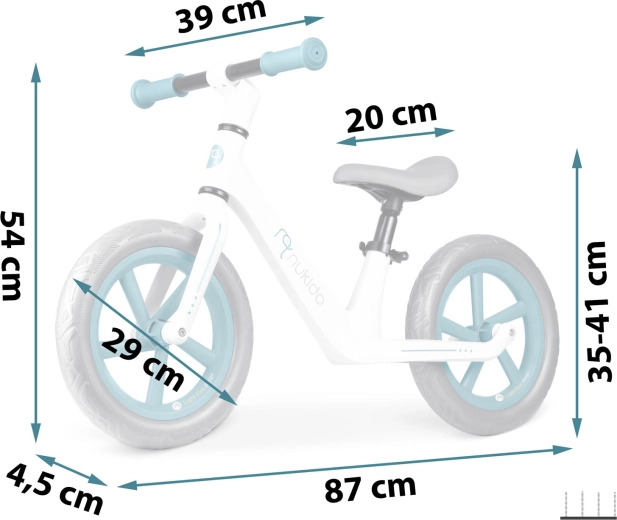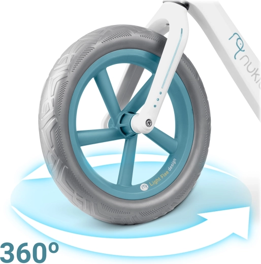 A könnyű Nukido Light Flee gyerek futóbicikli segíti a kicsiket a egyensúly és a koordináció fejlesztésében, mielőtt áttérnek a pedálos kerékpárra. Tartós nejlon vázat, állítható ülésmagasságot 8 cm-es tartományban, defektálló 12” EVA kerekeket és ergonomikus, ütközőkkel ellátott gumimarkolatokat kínál. Mindössze 2,8 kg, így a gyerekeknek és a szülőknek is könnyű kezelni.