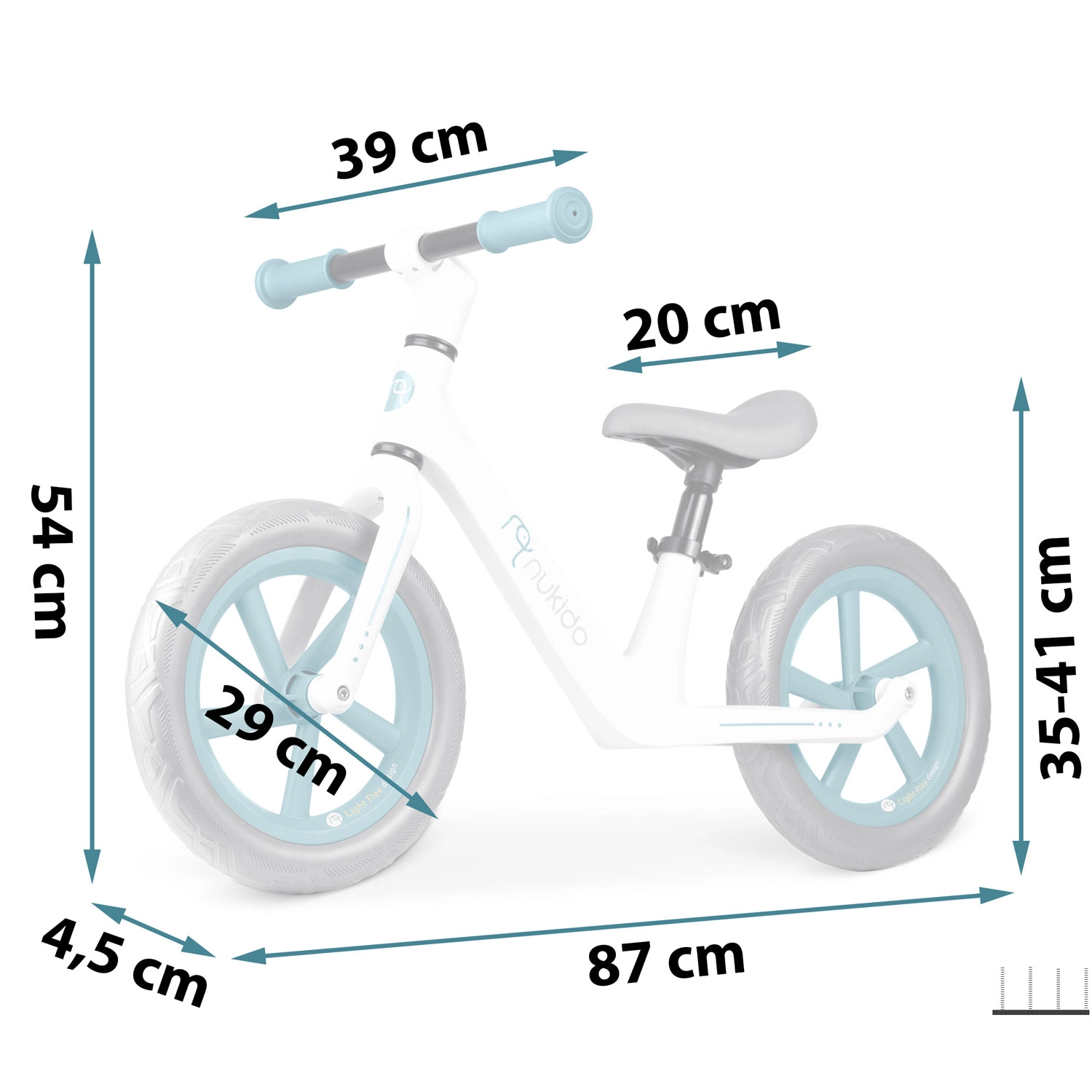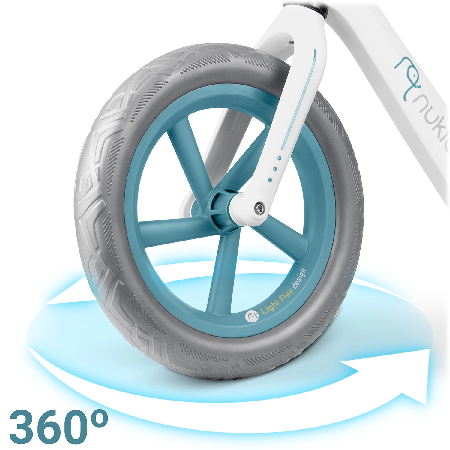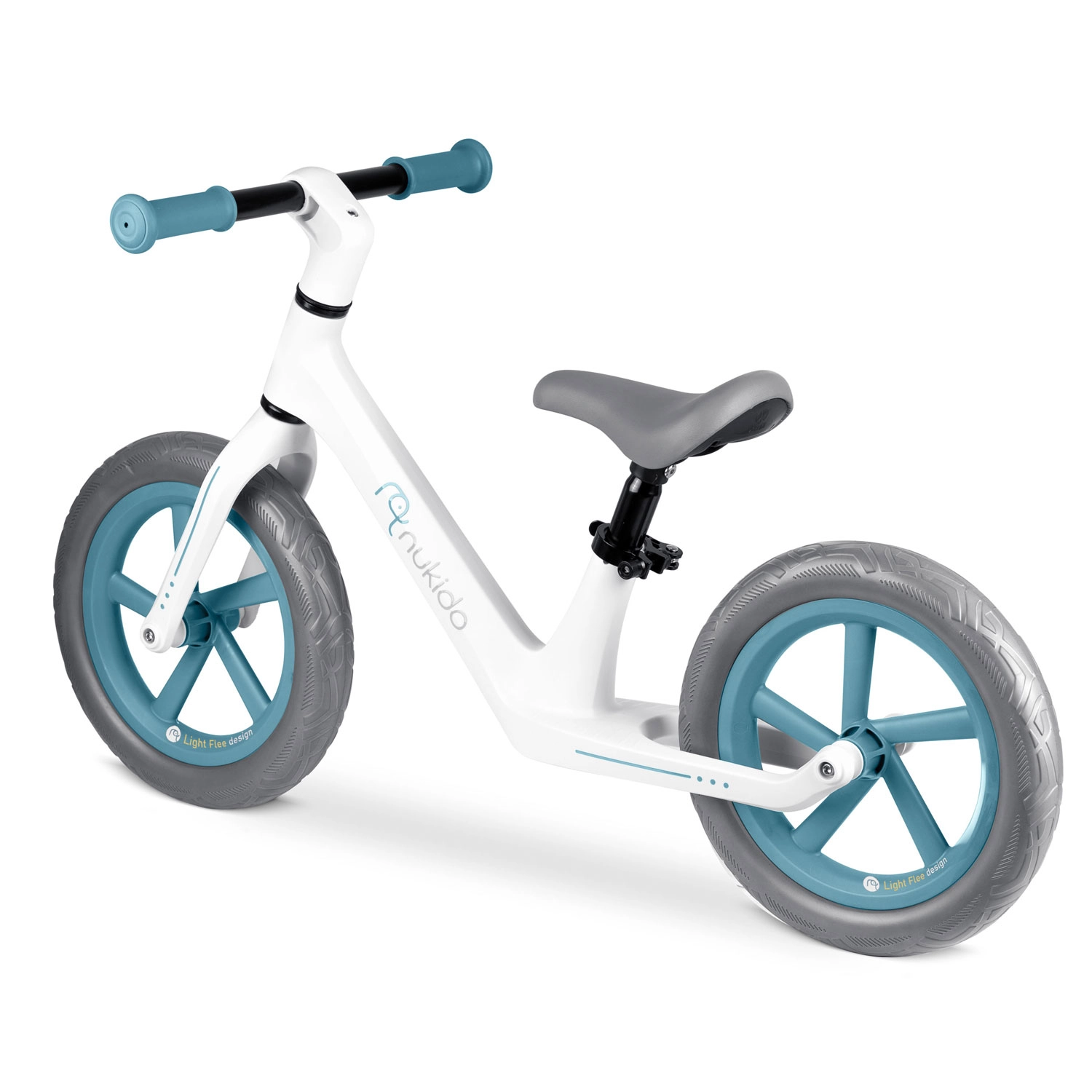 A Nukido Light Flee futóbicikli tökéletes első kerékpár a legkisebbeknek. Könnyű és masszív felépítésének köszönhetően a gyerekek gyorsan megtanulják tartani az egyensúlyt, jobban kanyarodni, és magabiztosabban irányítani a haladást. A puha párnázású ülés egyszerűen állítható a gyermek magasságához, így a bicikli együtt nő vele.