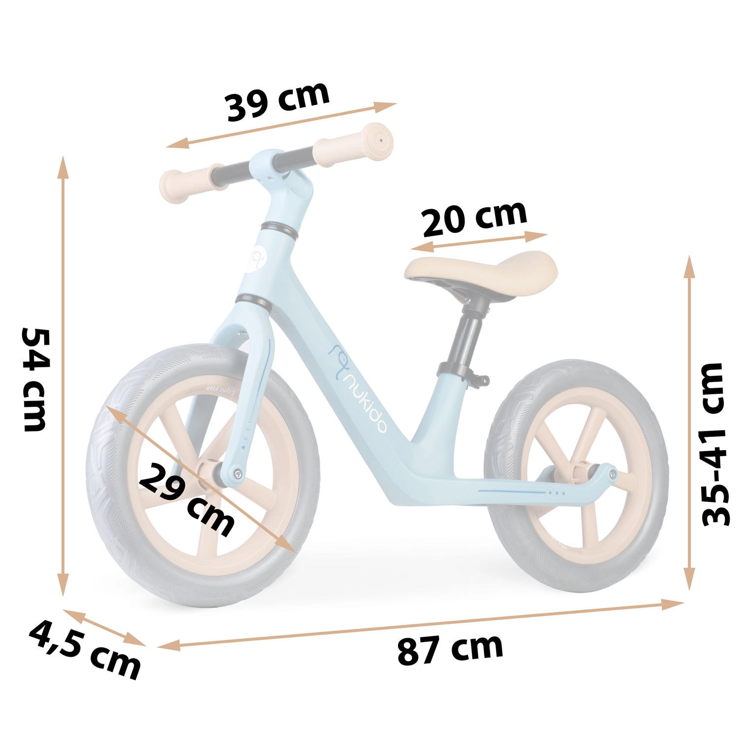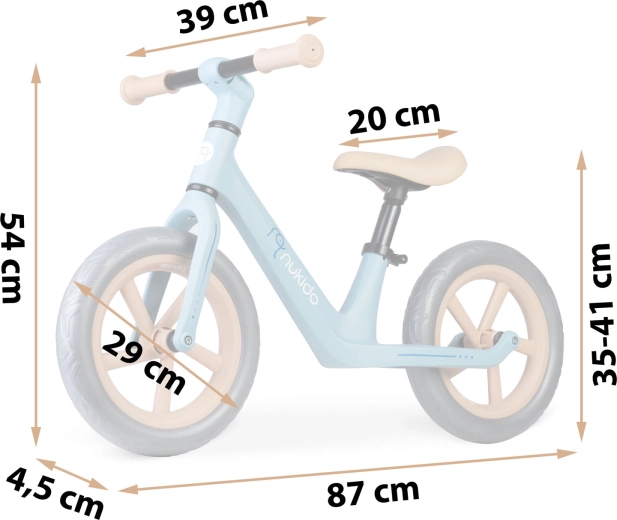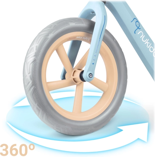 A Nukido Light Flee futóbicikli segít a gyerekeknek természetesen fejleszteni az egyensúlyt, a koncentrációt és az önbizalmat. A 2,8 kg-os alacsony tömeg a legkisebbek számára is megkönnyíti a kezelést, míg a nylon vázkonstrukció egyszerre erős és könnyű. A 12"-es, belső nélküli EVA kerekek karbantartásmentesek és defektmentesek – ideálisak a mindennapos használathoz.