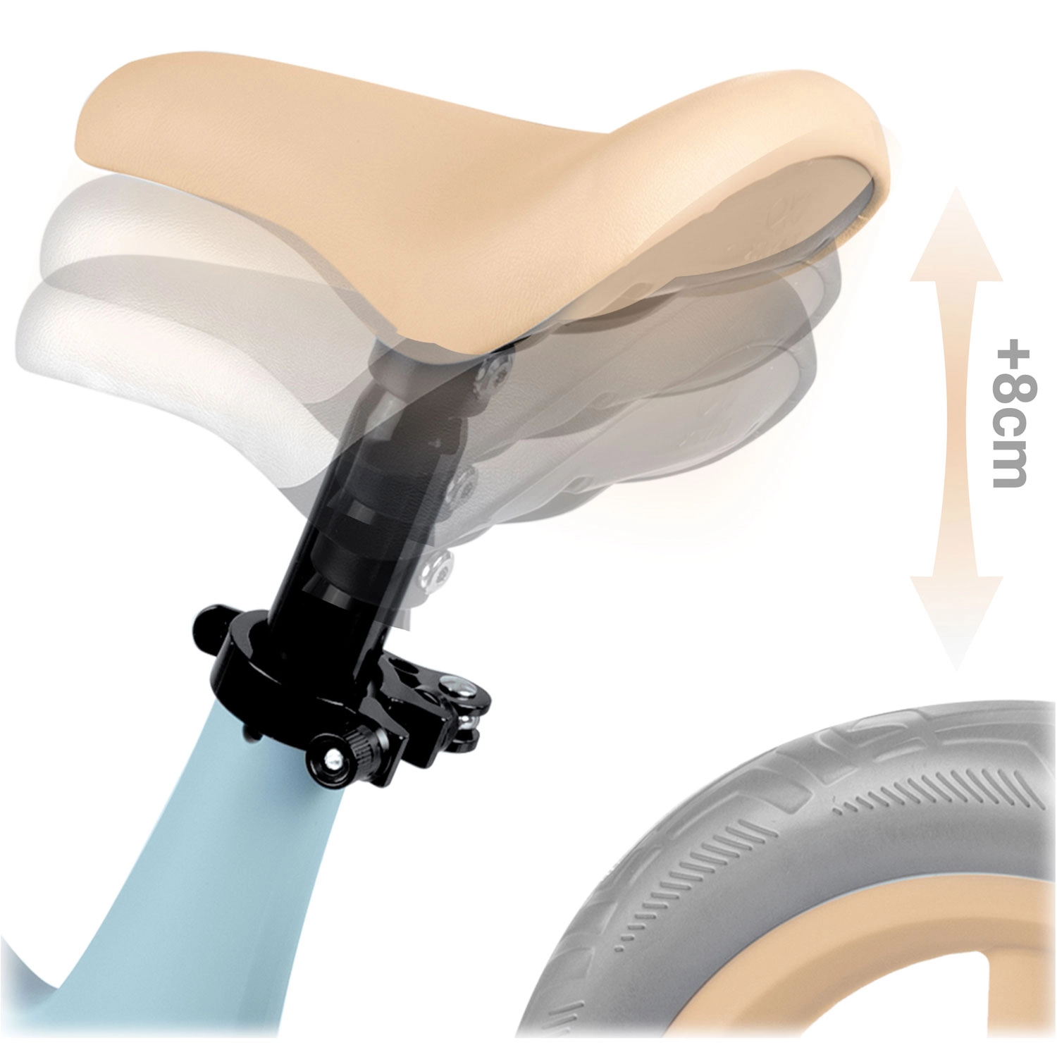A 8 cm-es tartományban állítható nyeregmagasság ideális pozíciót és kényelmet biztosít a növekedés különböző szakaszaiban.