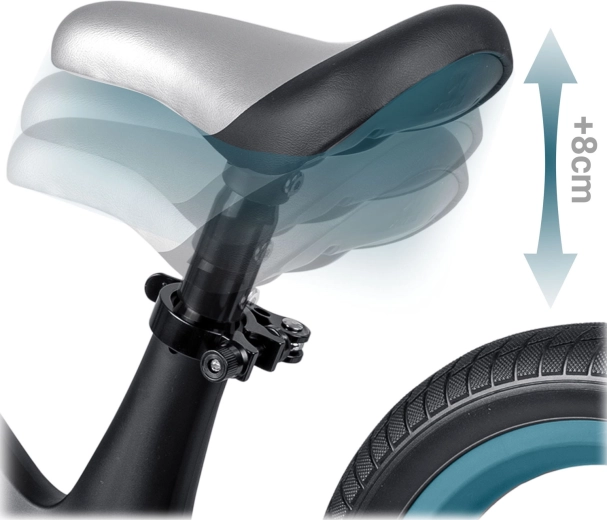 A széles ülésmagasság-állítási tartománynak köszönhetően a futóbicikli együtt nő a gyermekkel, és kényelmes ülést nyújt a fejlődés különböző szakaszaiban. A gumírozott, ütközővel ellátott markolatok magabiztosságot adnak a kormányzásnál és védik a kezeket.