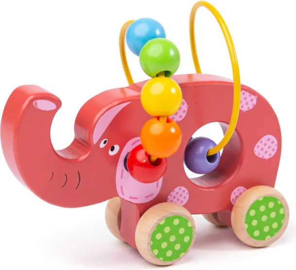 Keres egy játékot, ami nemcsak szórakoztat, hanem gyermeke fejlődését is támogatja? Ez a fa motoros labirintus elefánt formában a tökéletes választás! A gyerek színes fém labirintust élvezhet gyöngyökkel, ami kerekeken van, így könnyen húzható. A játék kiváló minőségű anyagokból készült és teljesíti az európai biztonsági előírásokat.