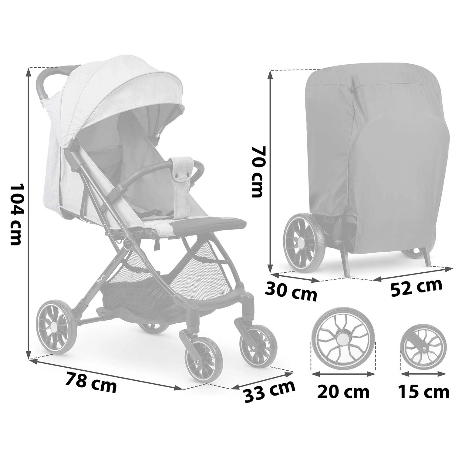 Az intuitív gomb gyors és biztonságos összecsukást tesz lehetővé – tökéletes tömegközlekedéshez, autóba rakva vagy a repülőgép kapujáig. Összecsukva kompakt és könnyen hordozható.