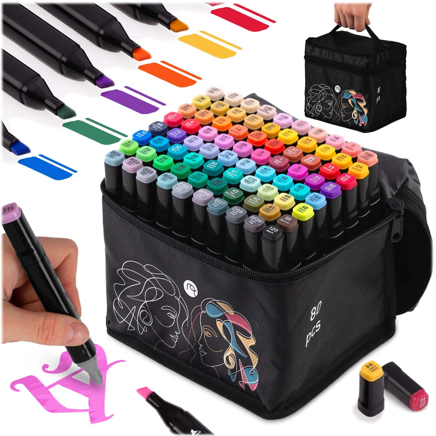A 80 darabos NUKIDO marker szett művészeknek, diákoknak és hobbialkotóknak készült, akik professzionális eredményt szeretnének elérni. Két hegy egy testben – finom, kb. 2 mm a részletgazdag vonalakhoz és ferde, kb. 7 mm a gyors kiszínezéshez – teljes kontrollt ad minden egyes húzás felett. Az alkoholos tinta gyorsan szárad, száradás után nem maszatolódik, és sima tónusátmeneteket hoz létre csíkok nélkül.