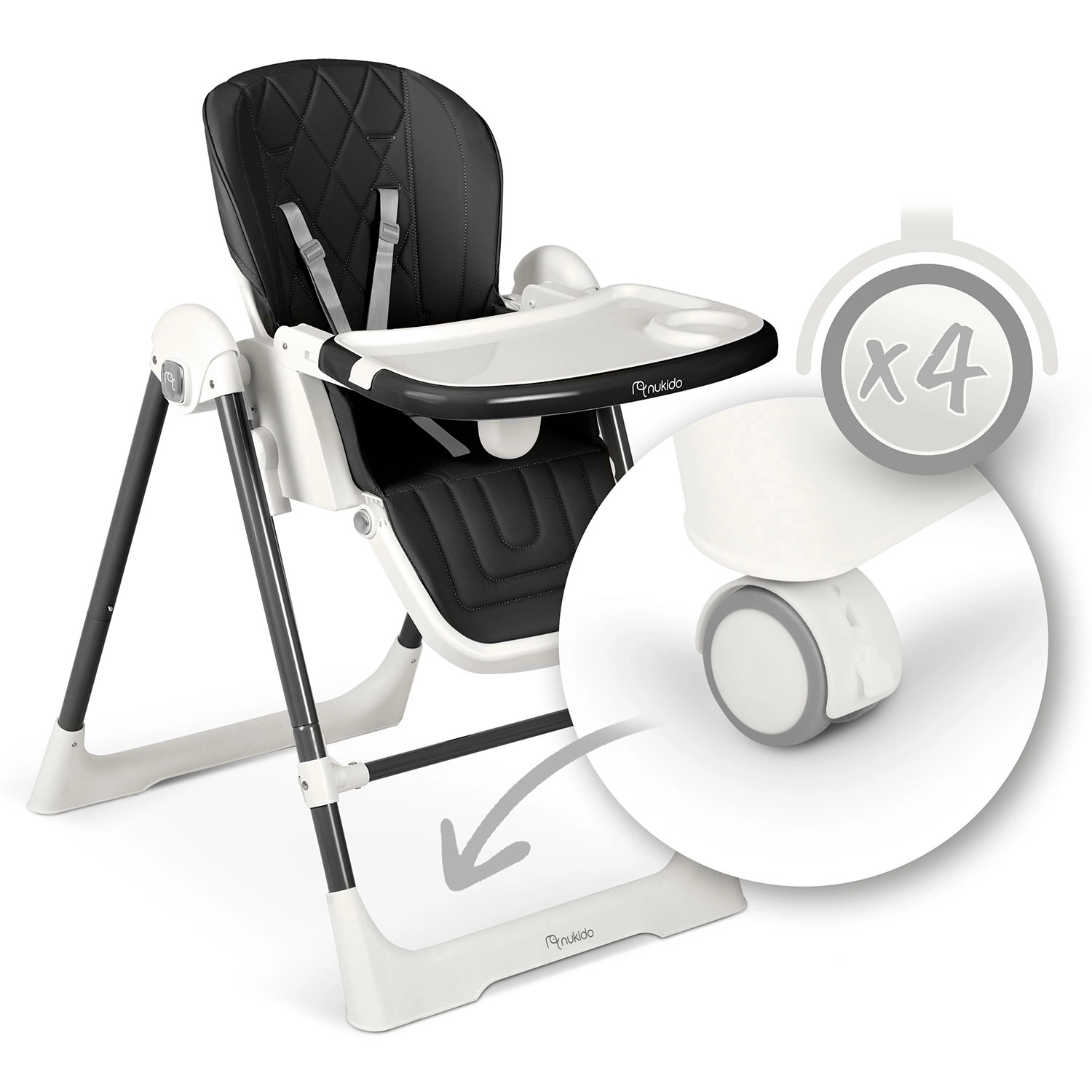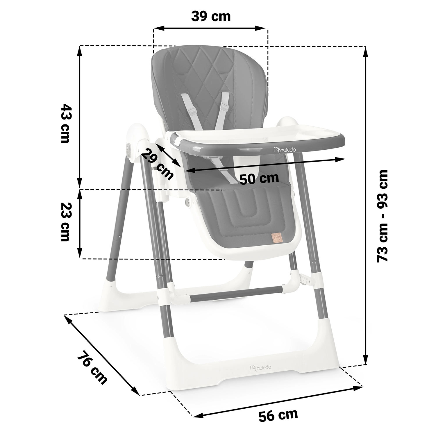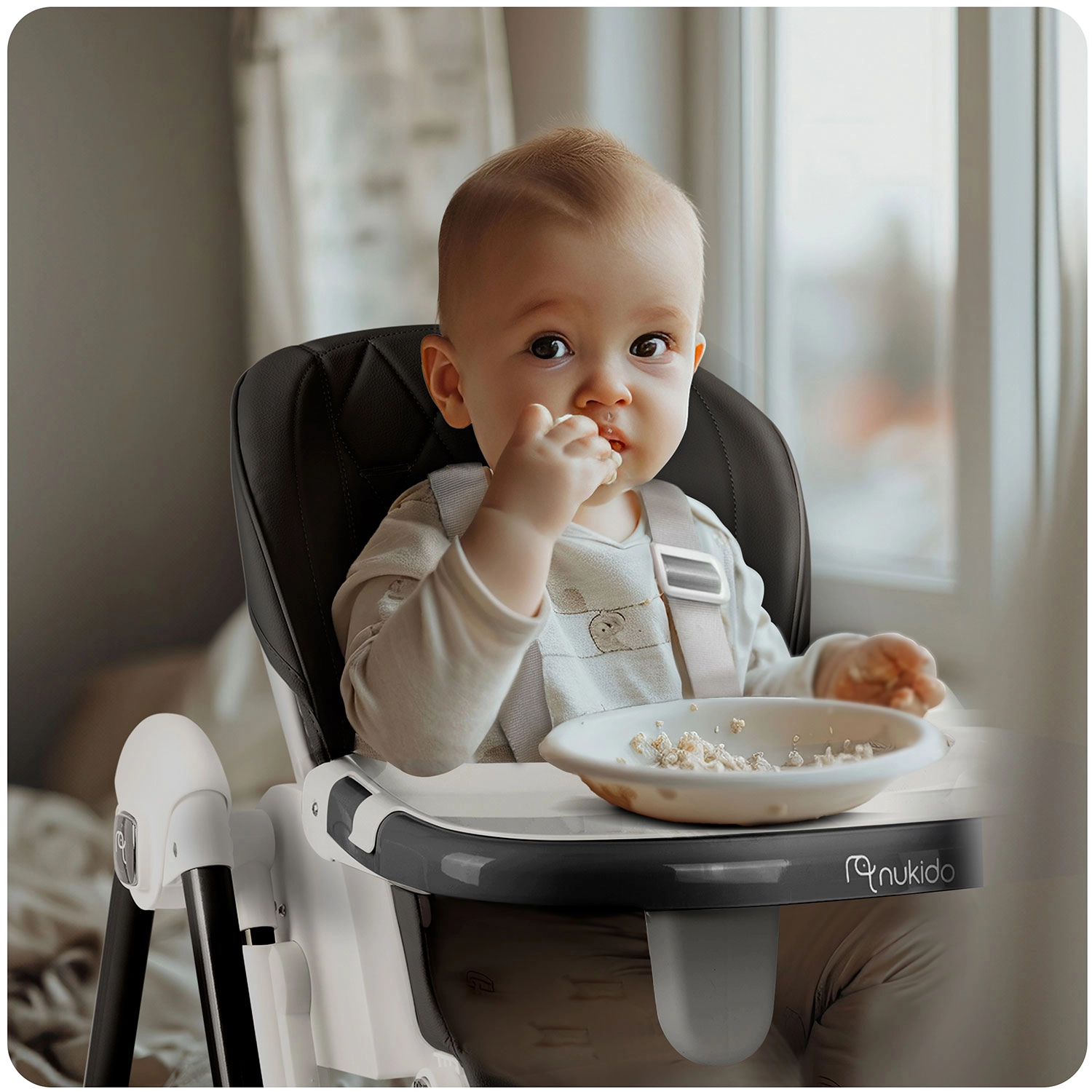 A multifunkciós Nukido Elite 3 az 1-ben etetőszék együtt nő a babával: használható etetőszékként, fekvőszékként és hintaszékként. Állítható háttámlát, akár fekvő pozícióig, állítható és levehető tálcát, magasságállítást és 5 pontos biztonsági övet kínál. Könnyen tisztítható a kivehető felső tálcabetétnek és a szennyeződést nem felszívó huzatnak köszönhetően. A stabil acéllábak és az összecsukható, kompakt méretek kényelmet és biztonságot nyújtanak otthon és utazás közben is.