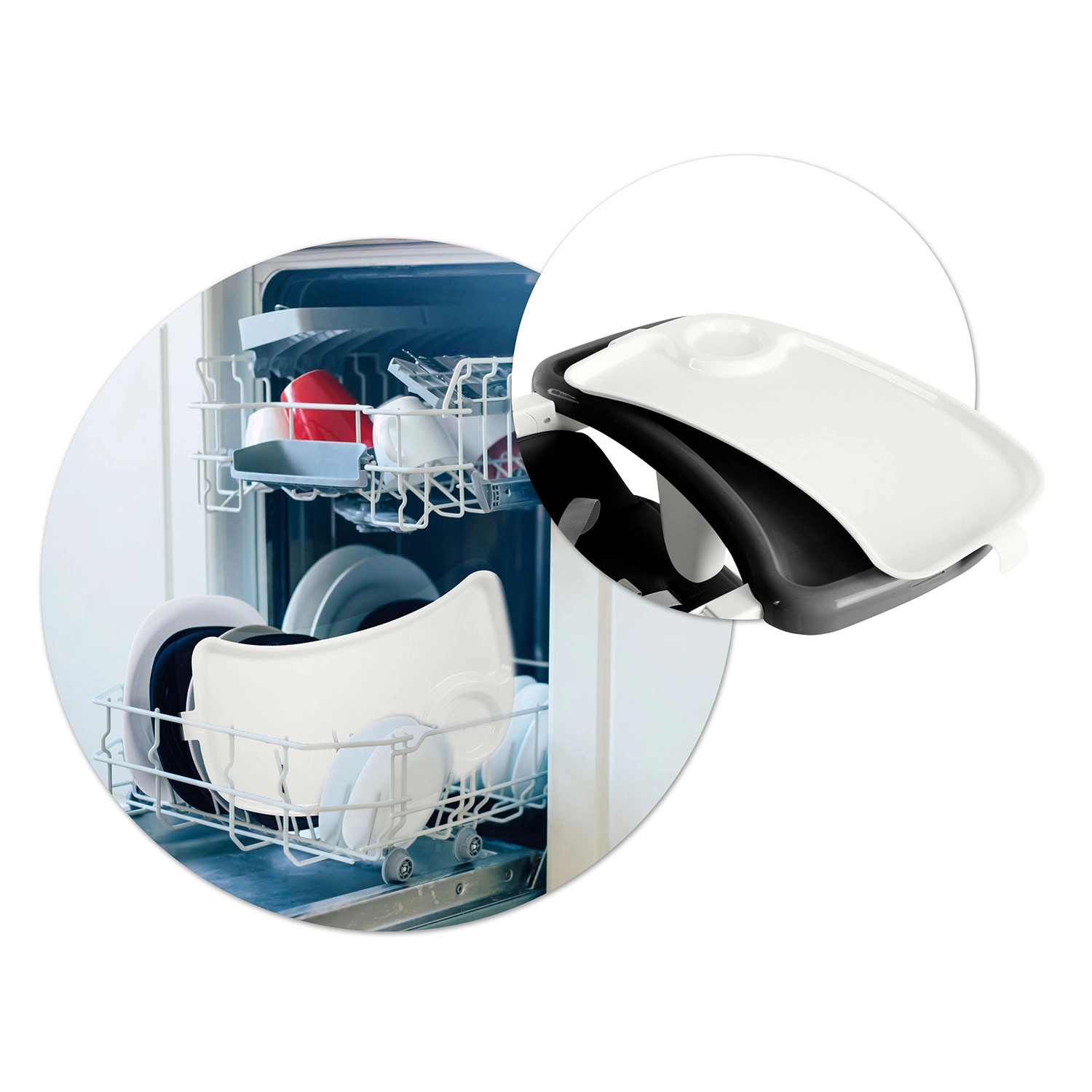 A felső tálcabetét levehető és leöblíthető, a huzat nem szívja magába a szennyeződéseket – elég áttörölni, és az etetőszék pillanatok alatt újra tiszta.