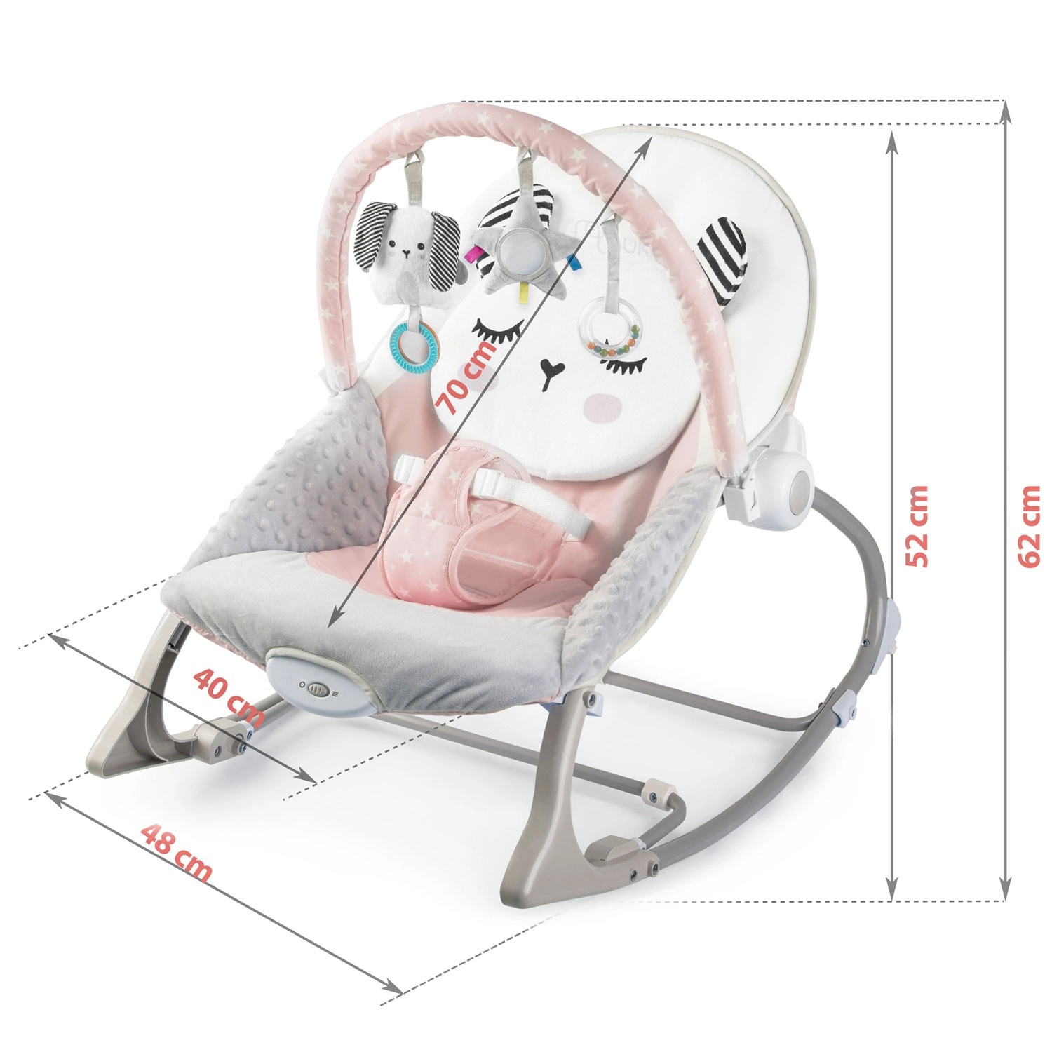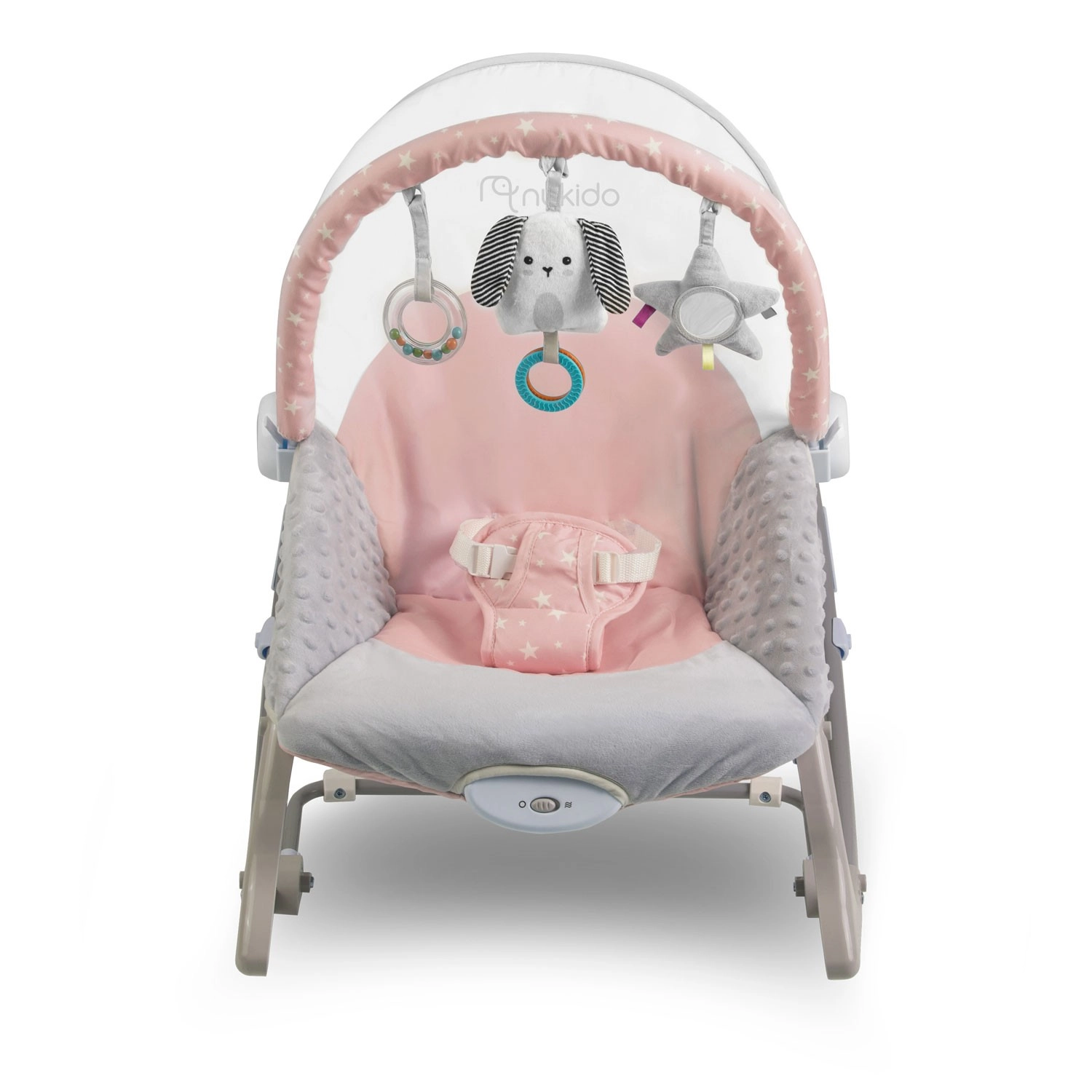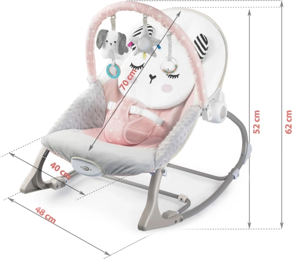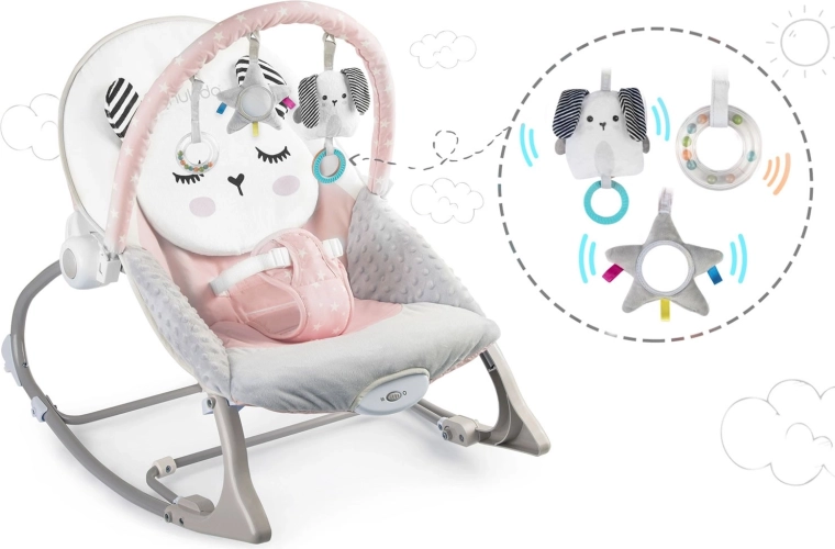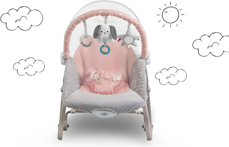 A rózsaszín NUKIDO rezgő pihenőszék remek segítőtárs a mindennapi babagondozásban. A megnyugtató ringatás a baba számára ismerős, természetes mozgást utánozza, segít ellazulni és könnyebben elaludni. A rezgő üzemmód egy mozdulattal bekapcsolható, és gyengéd megnyugtatást nyújt, amikor szabad kezekre van szükséged.