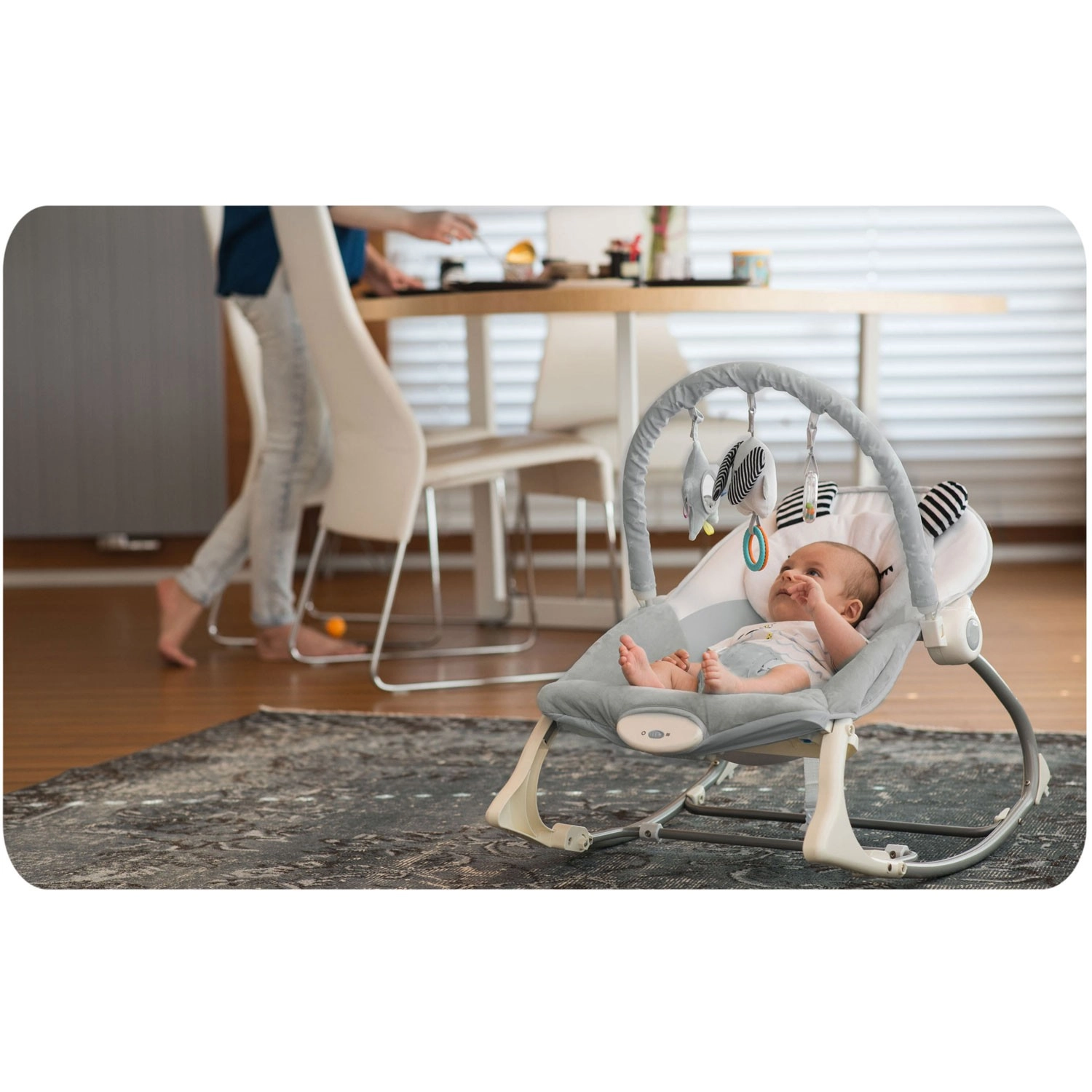 Kapcsold be a gyengéd rezgést, fektetsd le a babát, és biztosíts számára nyugodt pihenést. Ideális, amikor el kell intézned egy hívást vagy csomagot – a baba nyugodt és biztonságban marad.