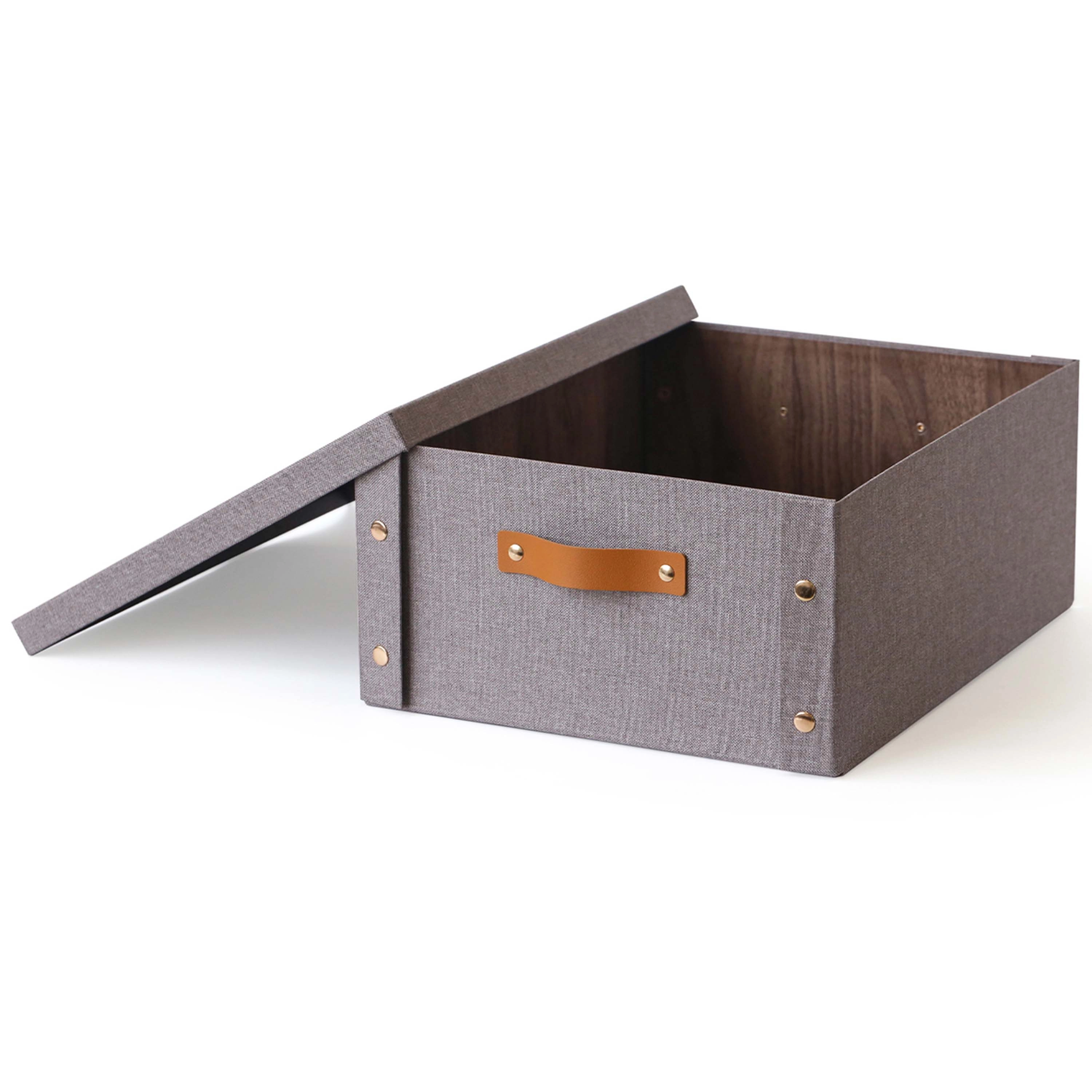 Ez a fedeles tárolódoboz kiváló megoldás dokumentumok, kiegészítők, játékok vagy textíliák tárolására. A papír és a masszív karton kombinációja stabilitást és alacsony tömeget biztosít, így könnyen hordozható, miközben megtartja formáját. Semleges megjelenése bármely belső térhez illik.