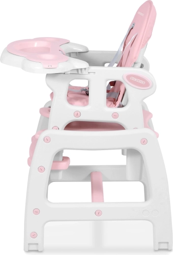 Praktikus és stílusos, 5 az 1-ben gyerek etetőszék a RICOKIDS Sincótól rózsaszínben, amely együtt nő gyermekével 6–36 hónapos korig. Öt konfigurációt kínál etetéshez, játékhoz és tanuláshoz, könnyen tisztítható ökobőr huzattal, levehető tálcával és 5 pontos biztonsági övekkel. A fékes kerekeknek köszönhetően könnyen mozgatható, az állítható háttámladőlés pedig kényelmet biztosít étkezés és pihenés közben is.