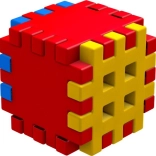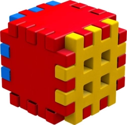 A fogazott élek és rácsos felületek szilárd elemkapcsolatot tesznek lehetővé, valamint egyszerű 3D formák, kockák és tornyok építését.