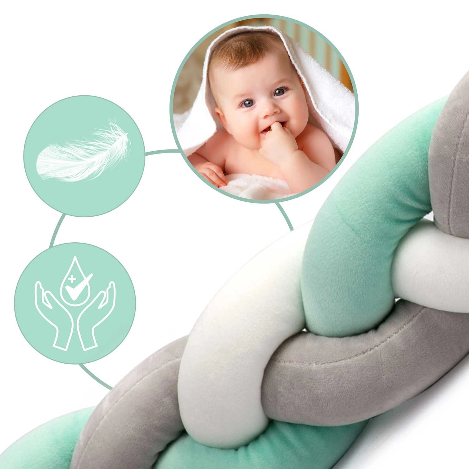 Puha, antiallergén kialakítás éles részek nélkül – védi a babát alvás és játék közben, tompítja a kiságy rácsainak ütődéseit.