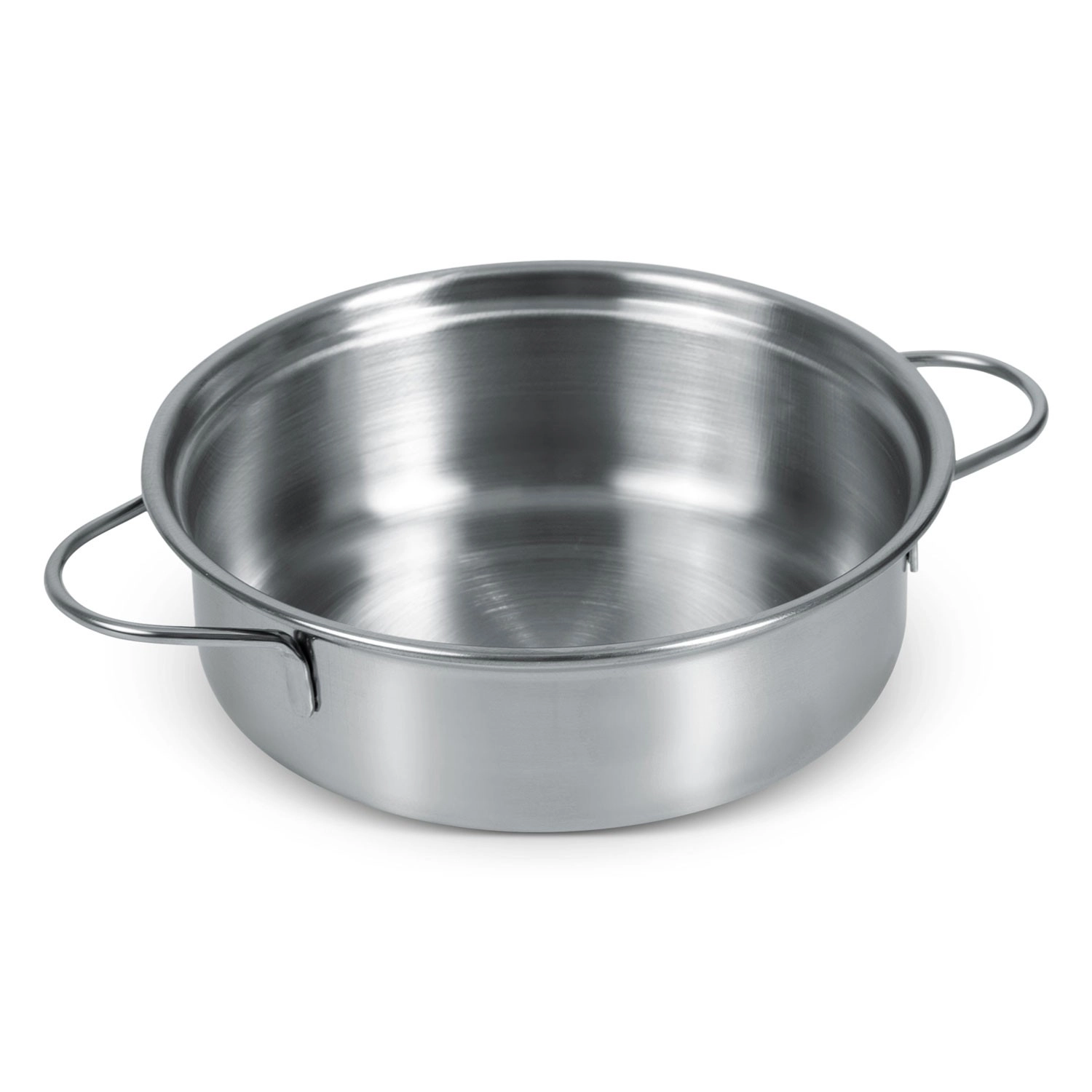 Széles, rozsdamentes acél fazék oldalsó fülekkel – ideális „levesfőzéshez”, kevergetéshez, és a kicsi kezek is könnyen megfogják.
