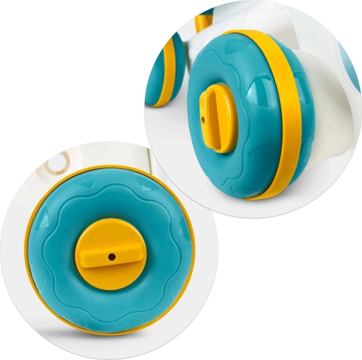 Négy stabil, gumiborítású kerék nem csúszik, nem karcolja a padlót, és a féknek köszönhetően megkönnyíti az első lépéseket és az egyensúly gyakorlását.