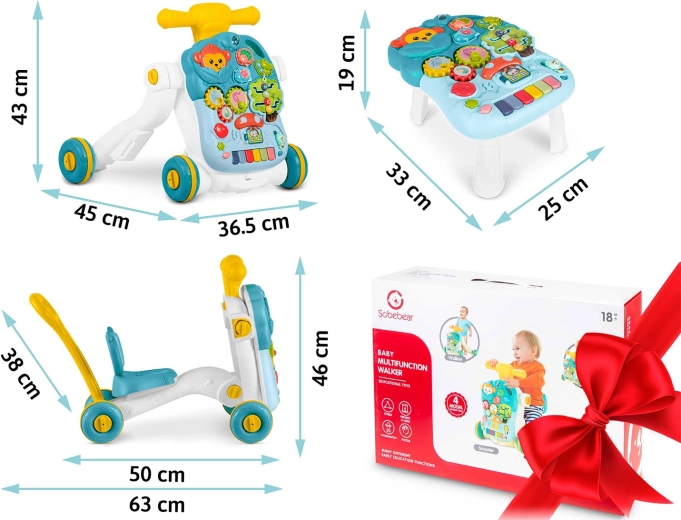 5 az 1-ben: járássegítő, futóbicikli, szülői segítséggel, asztal és panel