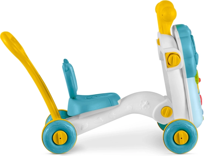 Egyszerű átalakítással a játék a gyermek aktuális igényeihez igazítható – az első lépésektől az önálló gurulásig és az asztali játékig.