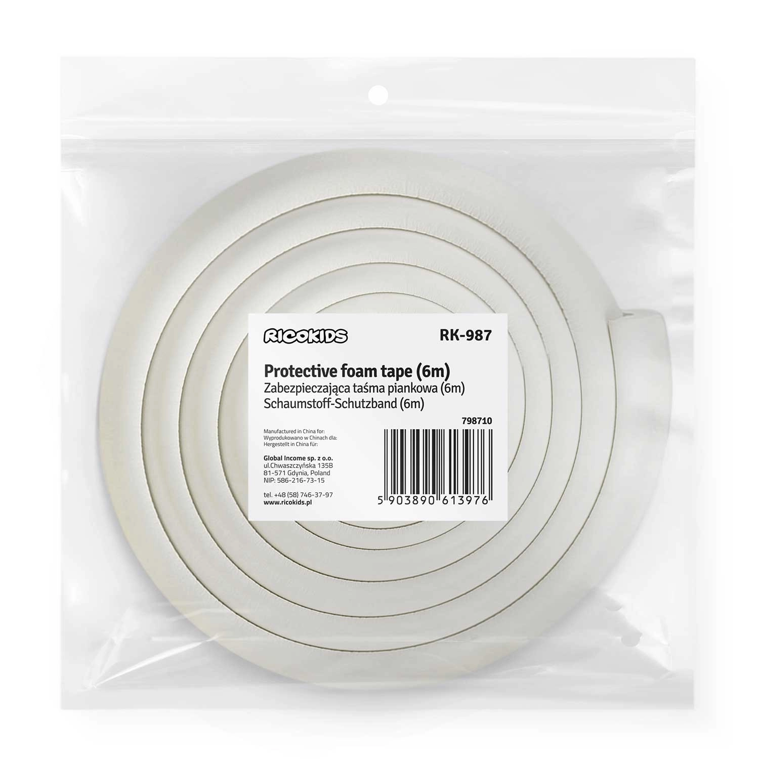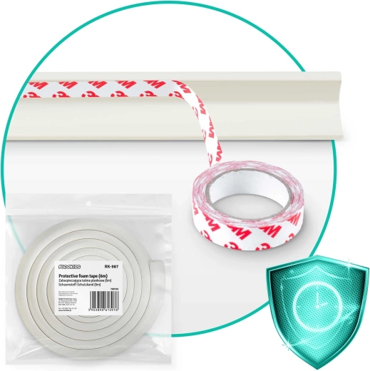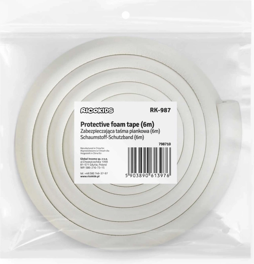 Védje gyermekeit és bútorait a praktikus, 6 m hosszú RICOKIDS hab élvédővel. Puha és vastag hab csillapítja az ütközéseket, UV-állóság óv a besárgulástól, a megbízható 3M kétoldalas ragasztószalag pedig szerszám nélkül biztos rögzítést nyújt. Ideális asztalokhoz, szekrényekhez és munkalapokhoz – könnyen méretre szabható, eltávolítás után nem hagy nyomot.