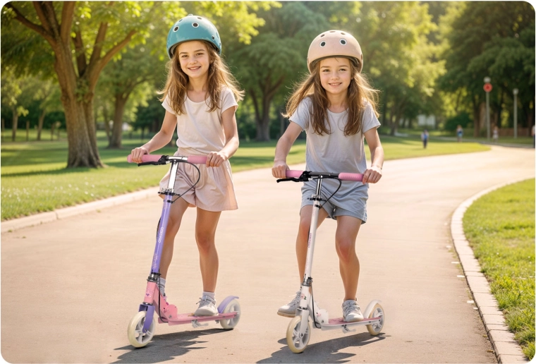 A RICOKIDS Kodi Hercegnők roller ideális választás első gurulásokhoz és mindennapi szórakozáshoz. Az alacsony és széles fellépő megkönnyíti az egyensúly elsajátítását, a könnyű szerkezet egyszerű kezelhetőséget ad, míg az összecsukó mechanizmus gondoskodik a könnyű szállításról és elhelyezésről. A stílusos rózsaszín–lila megjelenés hercegnős motívumokkal örömet szerez a kis motorosoknak, a szülők pedig értékelik a biztonságot és kényelmet.