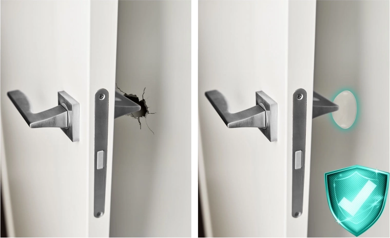 A minőségi, rugalmas anyagból készült fali védők tompítják az ütközéseket, és megakadályozzák a karcolásokat, horpadásokat és a festék lepattogzását. Az átlátszó design visszafogott, így megőrzi otthona esztétikáját. Egyszerű szerelés szerszám nélkül – csak tisztítsa meg a felületet, húzza le a fóliát, és erősen nyomja rá.