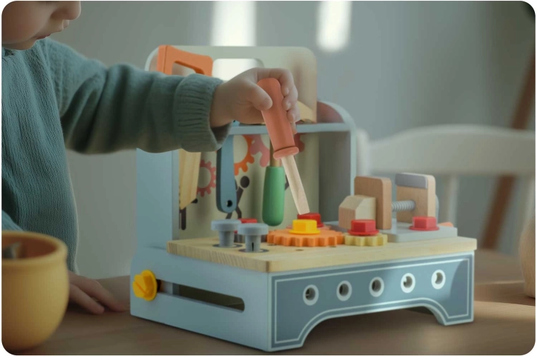 A készletet a Montessori elvek inspirálták – támogatja a játékon keresztüli tanulást, a türelem, a szem-kéz koordináció és az ok-okozati összefüggések megértésének fejlődését. A számos manipulálható elemnek köszönhetően a gyerekek fejlesztik a finommotorikát, a koncentrációt és a fantáziát, valamint megtanulják felismerni a színeket és formákat.