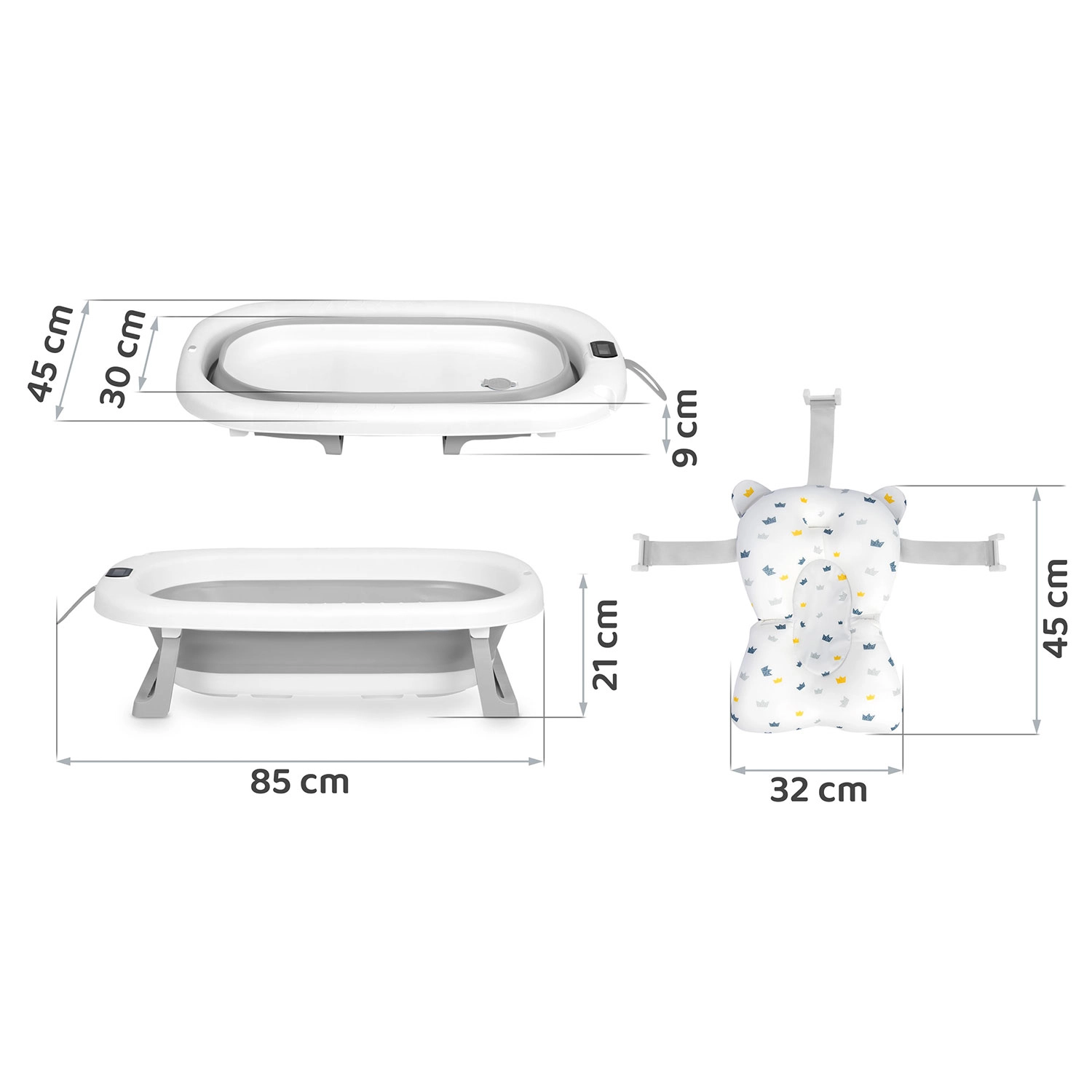 A beépített hőmérő pontos érzékelővel folyamatosan méri a víz hőmérsékletét. Az áttekinthető kijelzőn könnyen ellenőrizheti, hogy az fürdés a babának ideális-e.