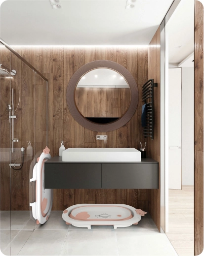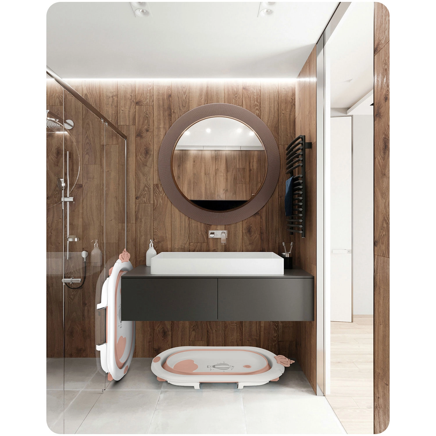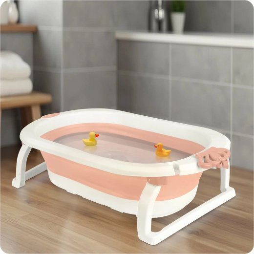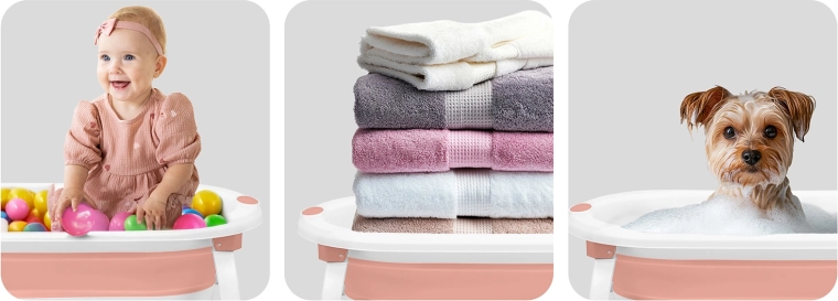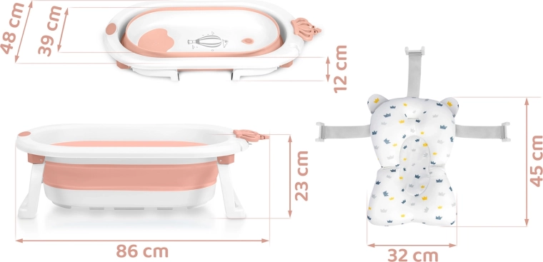A praktikus részletek nap mint nap hasznosak: kézizuhany-tartó az egyszerű, fröcskölésmentes megtöltéshez, stabil, kihajtható lábak csúszásgátlóval, valamint gyors leeresztés a dugónak köszönhetően. A kád minőségi, BPA-mentes anyagokból készült, ami biztonságot és könnyű tisztán tartást garantál.
