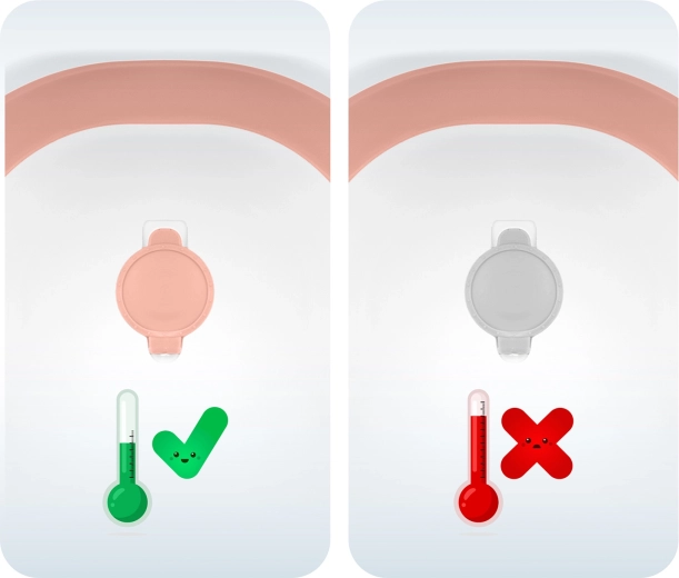 A dugó 38 °C átlépésekor színt vált, így biztos lehet az ideális hőmérsékletben az érzékeny bababőr számára.