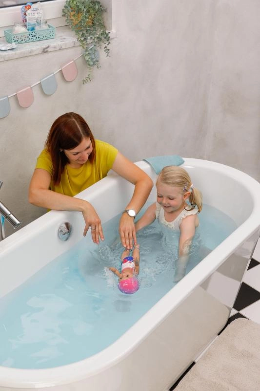 A BABY born úszóbaba Lizzie remek választás az első pozitív vízi élményekhez. Elég csak felhúzni a karjait, a víz felszínére fektetni, és figyelni, ahogy magától úszik. Élethű gyors- és pillangómozdulatai felébresztik a gyerekek fantáziáját és fejlesztik a finommotorikát.