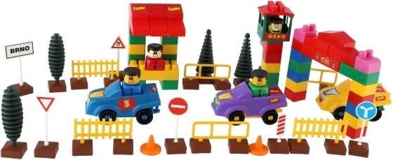 Az építőjáték tartalmaz valósághű elemeket, amelyek szimulálják a közlekedési környezetet a játékhoz, mint például autók, fák és közlekedési táblák.