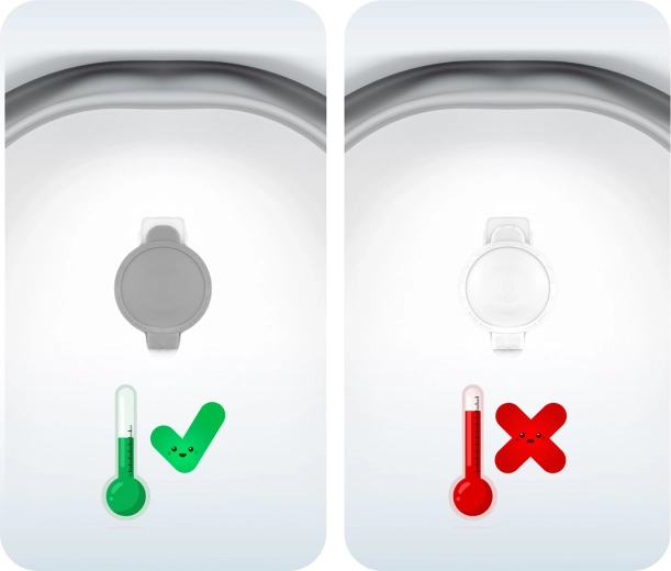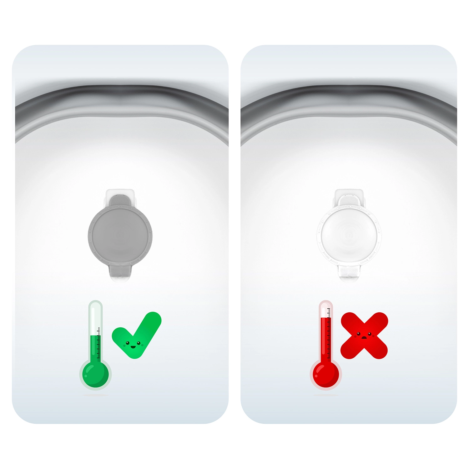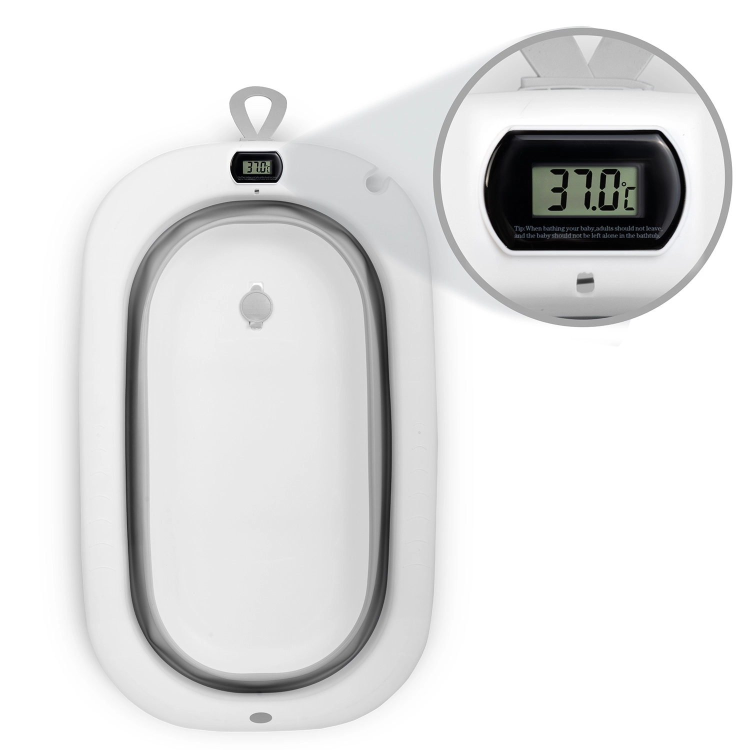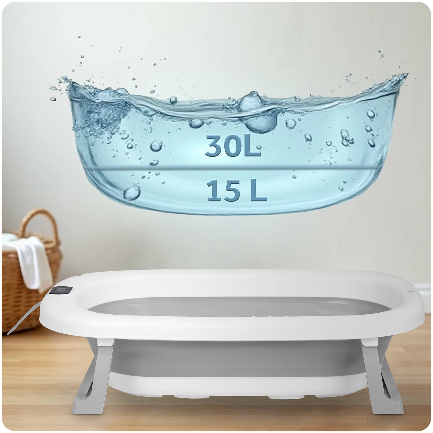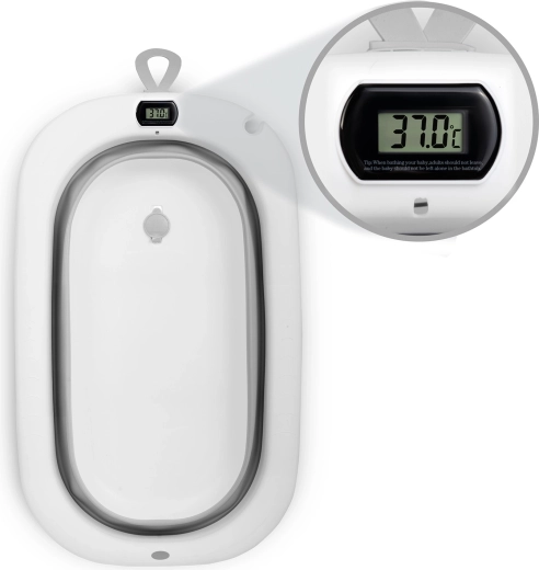 Az integrált elektronikus LCD hőmérő pontosan méri a hőmérsékletet. A dugó 38 °C felett színt vált, így biztos lehet a baba érzékeny bőrének megfelelő, biztonságos fürdővízben.