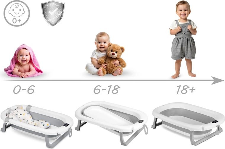 - Sokoldalúság: babáknak és nagyobb gyerekeknek, akár 45 l űrtartalom; később használható szennyestartóként, labdamedenceként vagy kisállat-fürdetéshez.