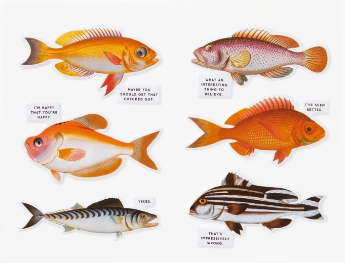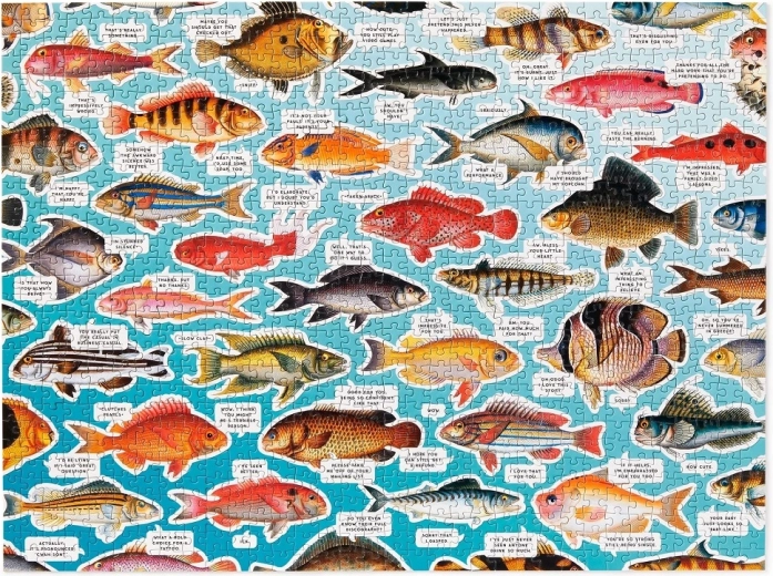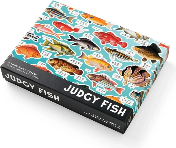 Fedezze fel a színek és a humor világát a GALISON Hal-gondolatok kirakóval. Az 1000 darabos puzzle eredeti, ironikus megjegyzésekkel ellátott hal-illusztrációkat és minőségi, fenntartható anyagokból készült kivitelezést kínál. A darabok masszívak és pontosan illeszkednek, a nyomat nem mérgező, a kép egyes részeit pedig fényes elemek (spot UV) emelik ki. A csomag része továbbá 6 pufi matrica még több szórakozásért.