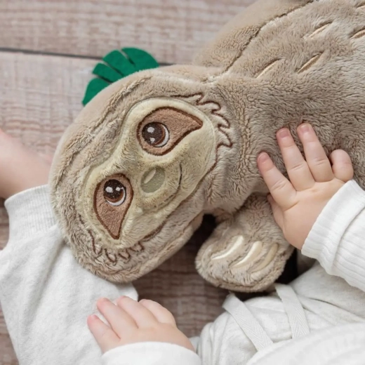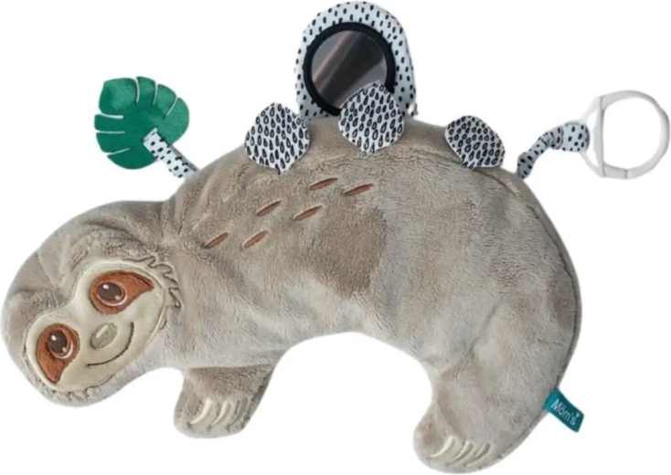 Puha, aktív lajhár alakú párna támogatja a tummy time-ot, a látás és a finommotorika fejlődését újszülött kortól. Ötvözi a kontrasztos elemeket, a biztonságos tükröt, a finom rezgéseket és a természetes susogást a szórakoztató szenzoros stimulációért. A töltetben lévő természetes hajdinahéj a baba testéhez idomul, megnyugtat és felfedezésre ösztönöz.