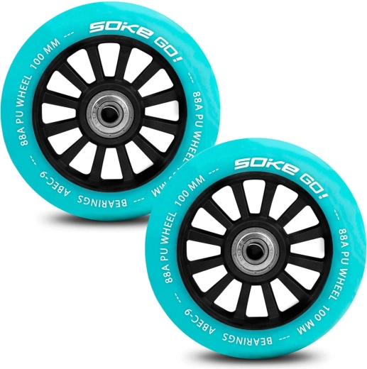 Cseréld le a régi kerekeket gyors és tartós, 100 mm átmérőjű SOKE kerekekre. A 88A keménységű PU keveréknek és a precíz ABEC‑9 csapágyaknak köszönhetően simább gurulást, kiváló tapadást és stabilitást kapsz kemény felületeken, például aszfalton.