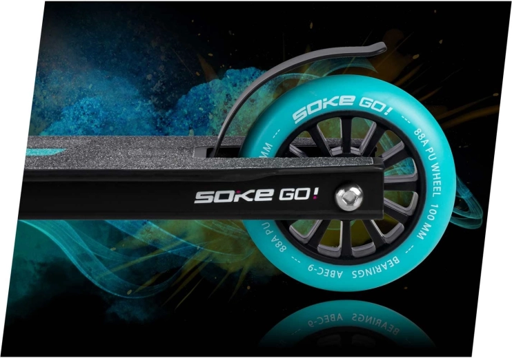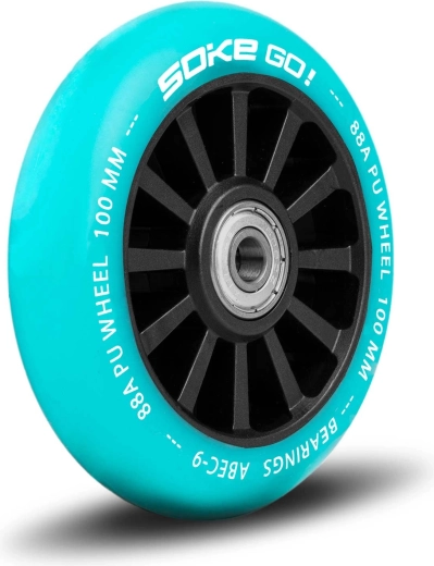 A minőségi, türkiz színű SOKE kerekek megbízható teljesítményt nyújtanak mindennapi guruláshoz és trükkök gyakorlásához. A 88A poliuretán keverék kiegyensúlyozza a sebességet és az irányíthatóságot, míg az ABEC‑9 csapágyak sima indulást és minimális ellenállást biztosítanak.