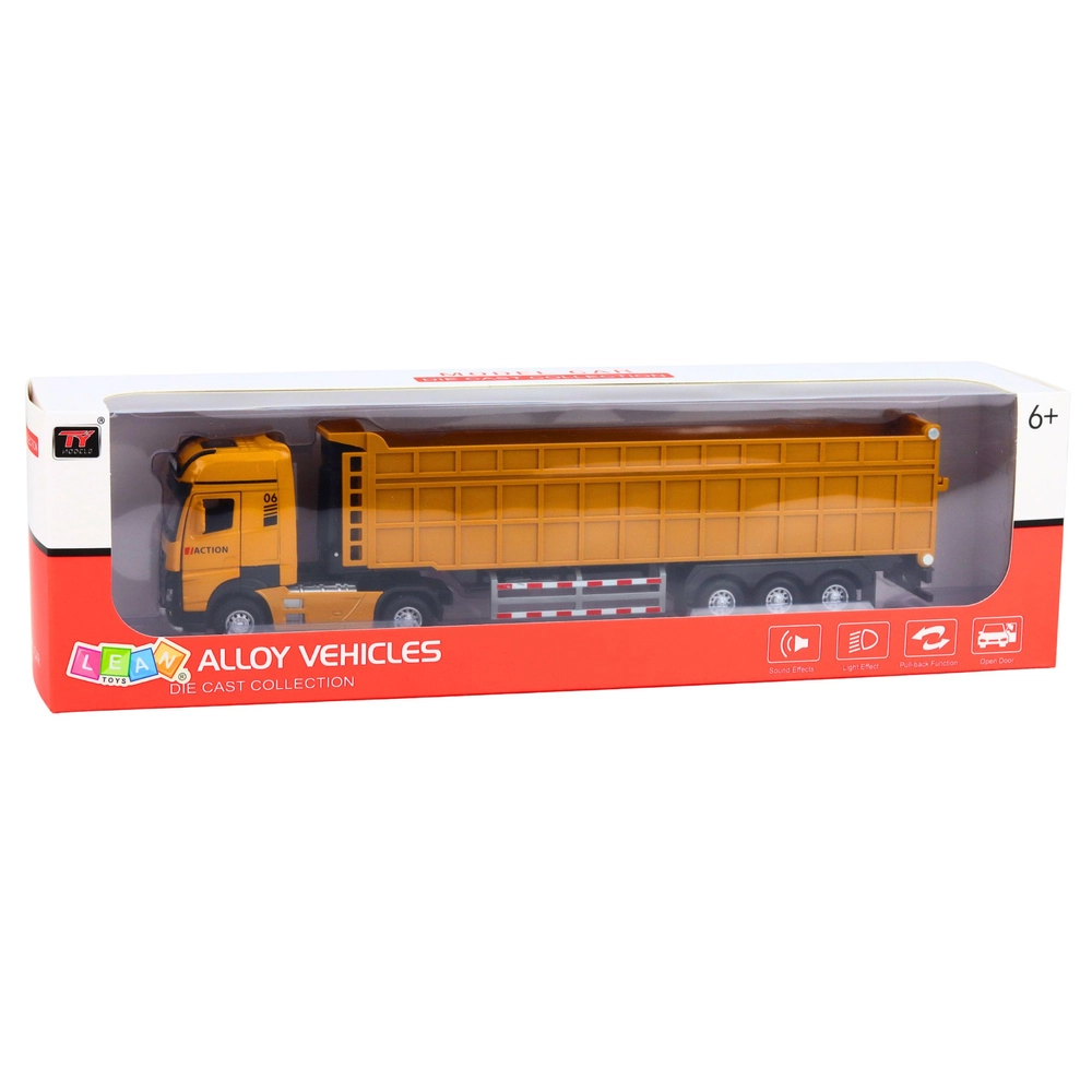 A valósághű billenő szerelvény gyerekeknek fém vezetőfülkével, gumigumikkal és fény- és hangeffektekkel érkezik. A felhúzós meghajtásnak köszönhetően távirányító vagy menetakkumulátor nélkül is elindul, a emelhető plató pedig megkönnyíti a rakomány be- és kirakását. Remek választás a kis építőgépek rajongóinak és a kreatív játékhoz.
