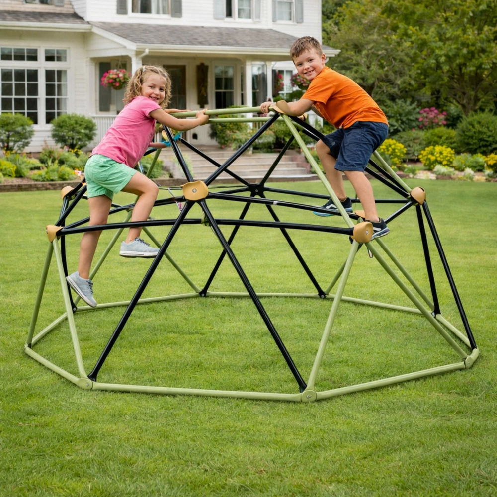 A kerti mászódóm gyerekeknek stabil, tartós és biztonságos szerkezetet kínál az aktív szabadtéri szórakozáshoz. A porszórt acélból készült geodéziai felépítés csúszásmentes fogásokkal támogatja az erő, a koordináció és az egyensúly fejlesztését. Könnyen elhelyezhető fűre, homokra vagy más egyenletes felületre, rögzítés nélkül.