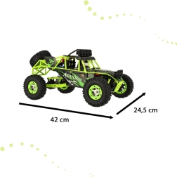 A motor nyomatéka kardánon keresztül jut a tengelyekhez, a fém fogaskerekek növelik a tartósságot, a 7,4 V 1500 mAh-s akkumulátor pedig elegendő teljesítményt biztosít. A csomag mindent tartalmaz az induláshoz – autó, távirányító, akkumulátor és töltő.