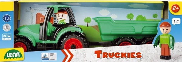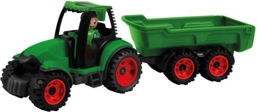 A Truckies sorozat traktorja pótkocsival örömet szerez a kis építőknek és kis gazdáknak. A strapabíró kialakításnak és a teljesen mechanikus vezérlésnek köszönhetően a gyerekek elemek nélkül élhetik át az autentikus játékot – a plató emelése, a pótkocsi csatlakoztatása és leválasztása, valamint a vezetés a sofőr figurával.