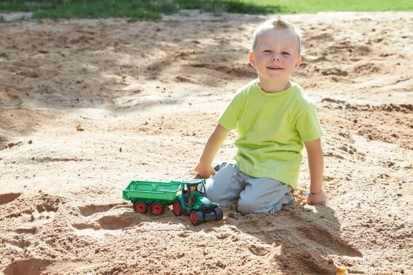 Minőségi, erős műanyag, amely bírja a homokozót, a kertet és a játszószobát is, hosszú élettartammal.