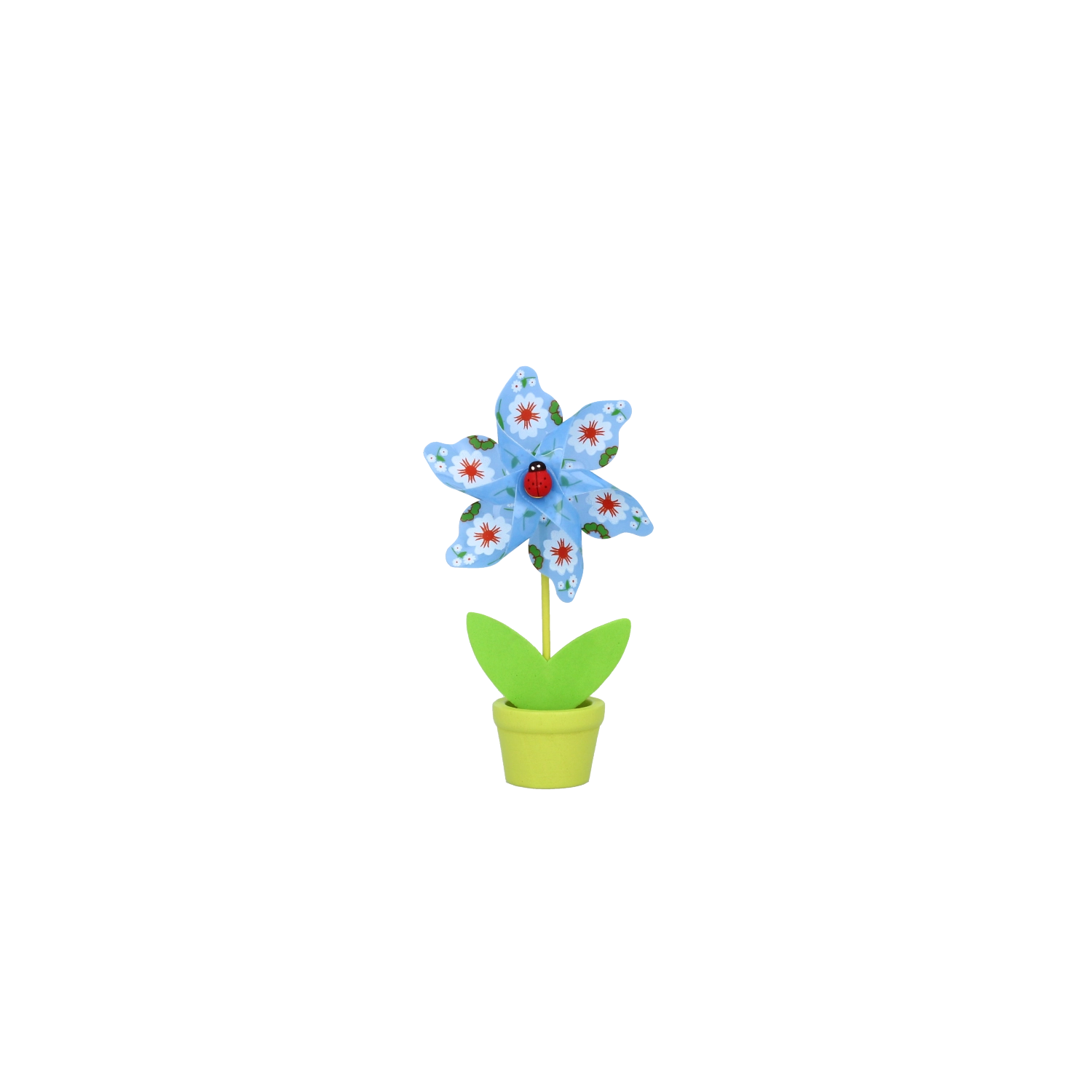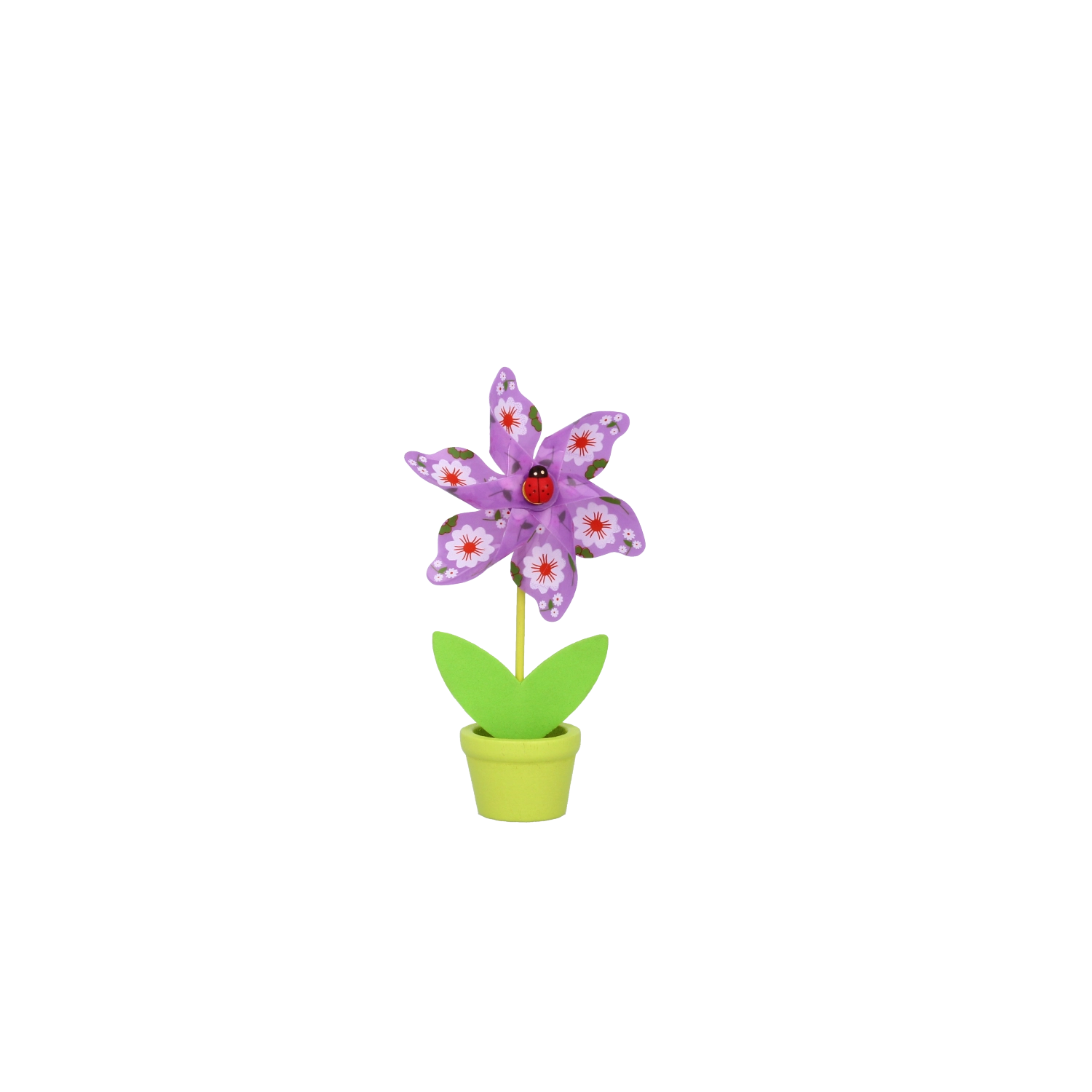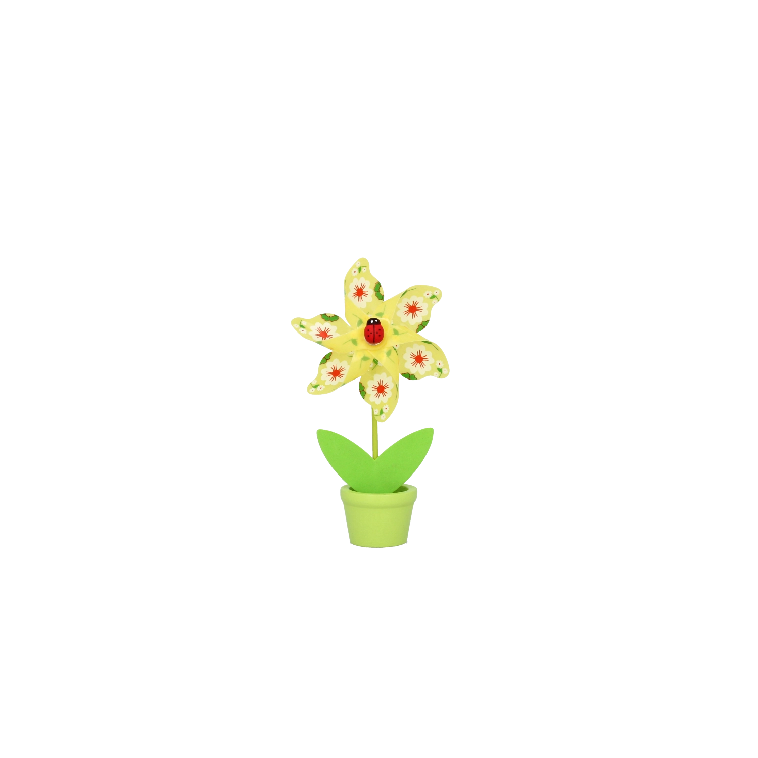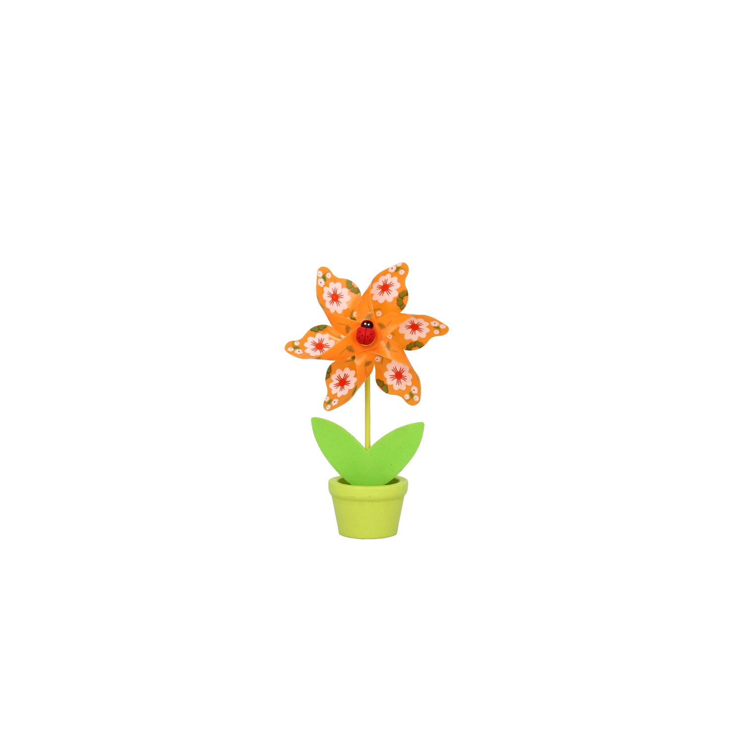 Minden szélforgó játékos virágmotívummal és apró katicabogárral készül, hat élénk színváltozatban, amelyek feldobják bármelyik helyiséget.