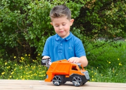 A Lena TRUXX 2 kukásautó erős és ártalmatlan műanyagból készült, amely ellenáll az ütéseknek és alkalmas kültéri játékra is.