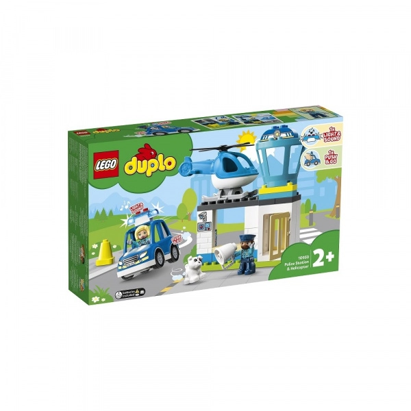 Ez a sokoldalú LEGO DUPLO Rescue szett rengeteg lehetőséget ad a szerepjátékra. Az állomáson kilátótorony, nyitható ajtók és olyan kiegészítők találhatók, mint a bögre/megafon, valamint számítógépet és kamerarendszert ábrázoló nyomtatott elemek. A készlethez rendőr, rendőrnő és egy aranyos rendőrkutya figura tartozik.