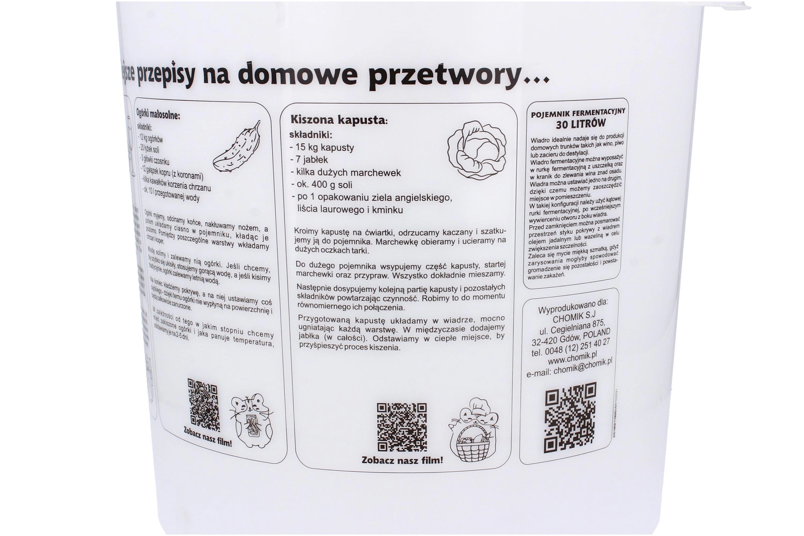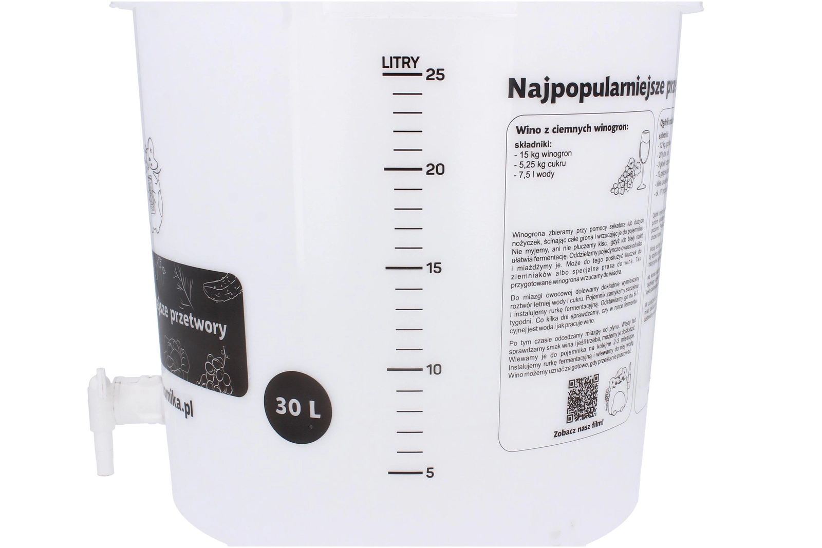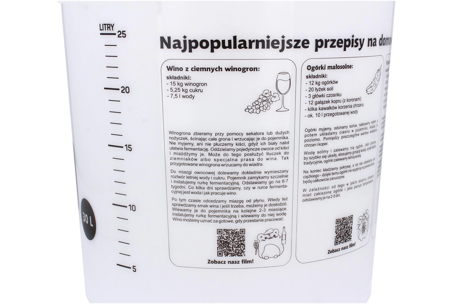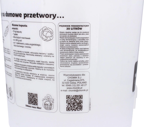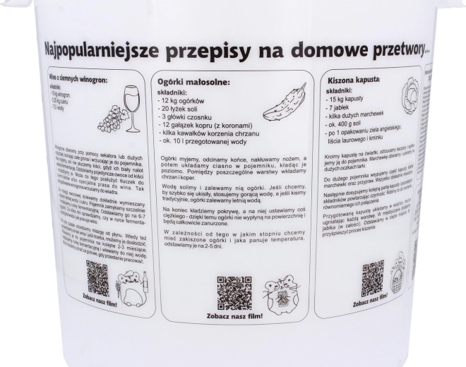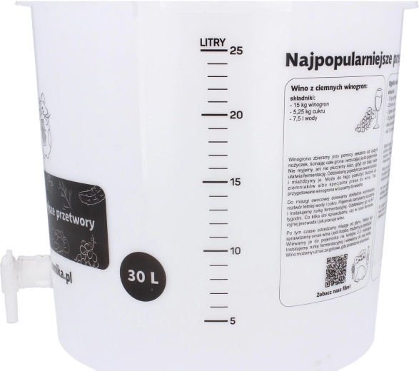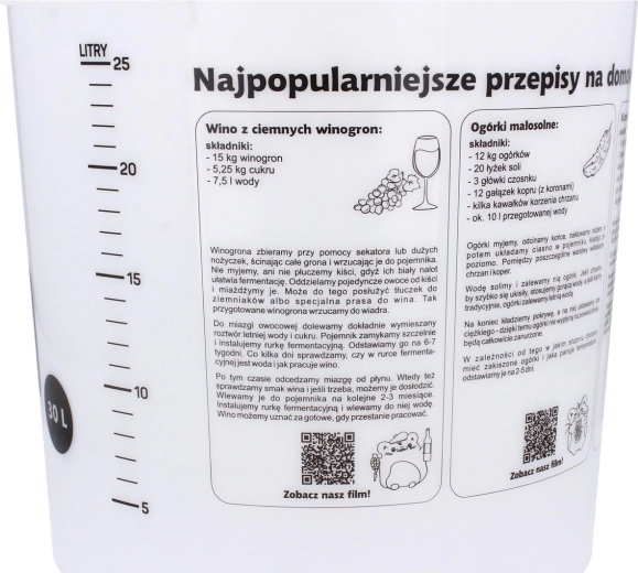 A praktikus erjesztő vödör fedéllel nagy, 30 l-es hasznos kapacitást kínál, amely tökéletes házi sör, bor vagy must erjesztéséhez. Alacsony tömegének és gondosan megválasztott méreteinek köszönhetően könnyen szállítható és tárolható, miközben a fedél segít megóvni a tartalmat a szennyeződésektől.
