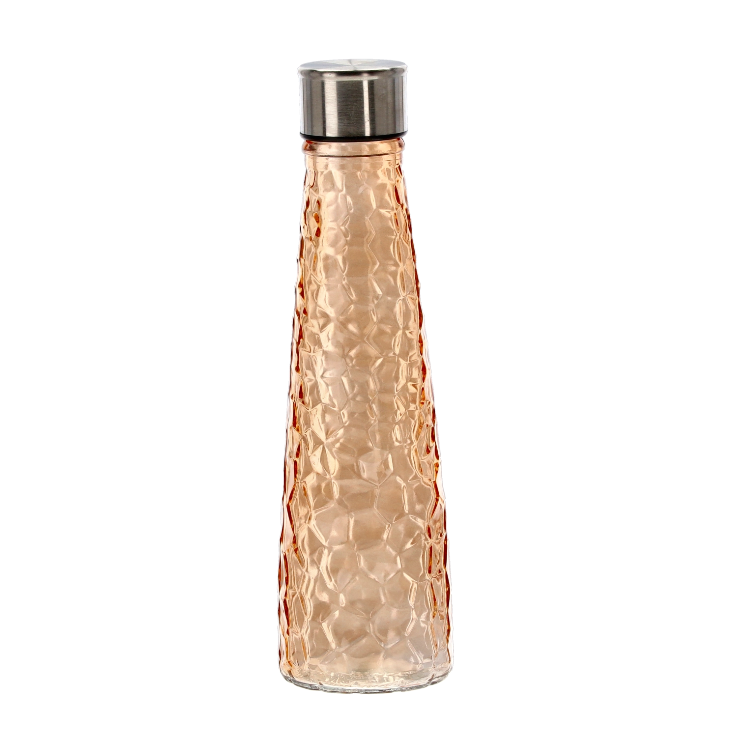 Ez a 0,5 literes üvegpalack elegáns dizájnt és praktikusságot ötvöz. A tartós üvegből készült test finom kalapácsolt/fazettált mintázattal kényelmes fogást biztosít, és segít megelőzni a kicsúszást. A rozsdamentes acél csavaros kupak biztonságosan zár, így a palackot bátran hordhatod táskában vagy hátizsákban.