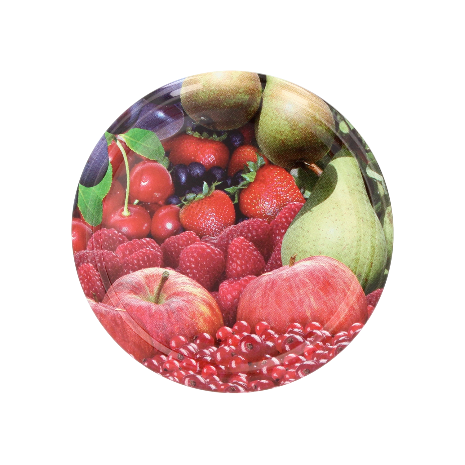 Megbízható kupakok 82 mm átmérőjű üvegekhez, ideális választás otthoni és professzionális befőzéshez. A hat bevágásnak köszönhetően könnyen érhető el a szoros meghúzás, amely minimalizálja a szivárgás kockázatát és biztosítja a tartalom hosszan tartó frissességét. Az esztétikus gyümölcs design feldob bármely kamrát.