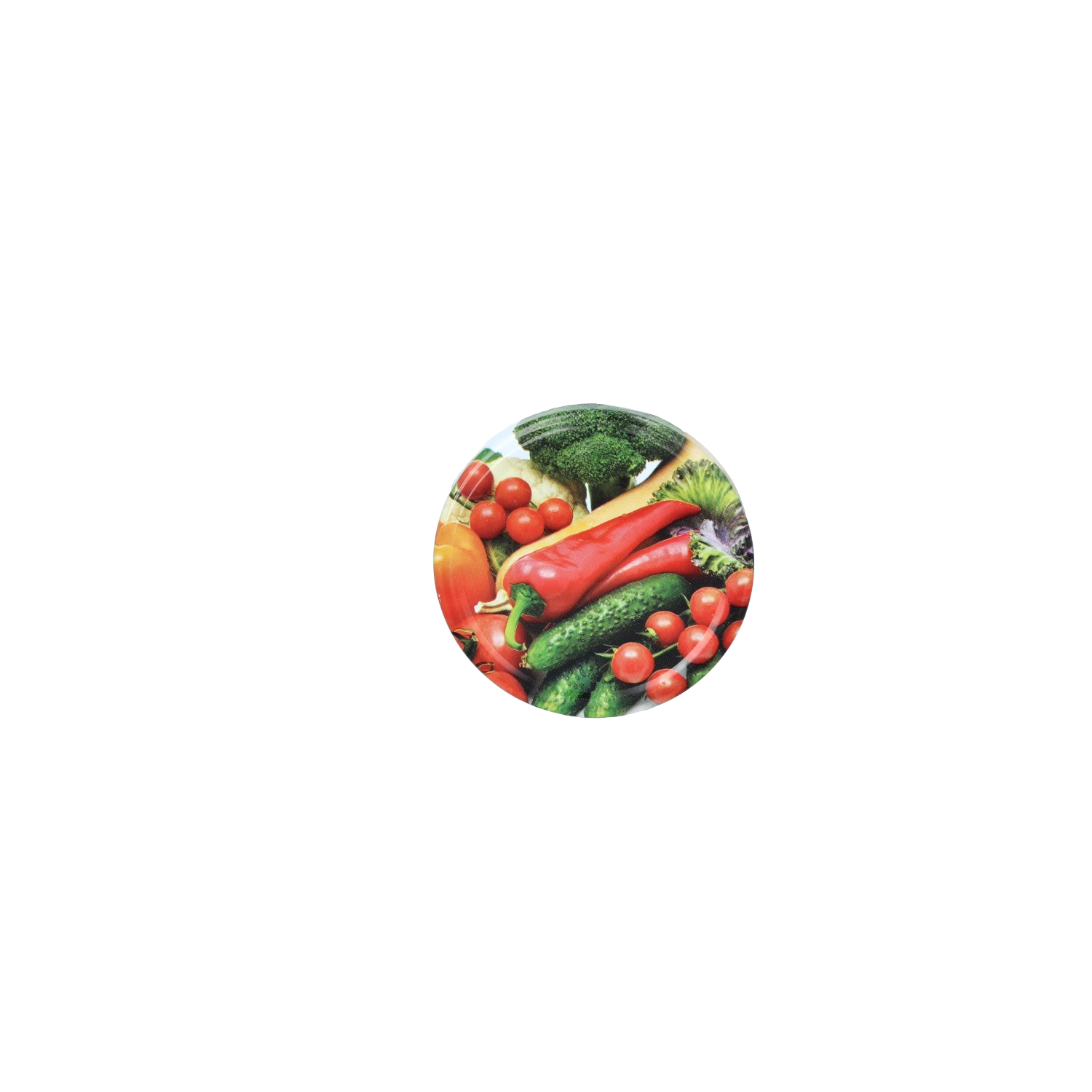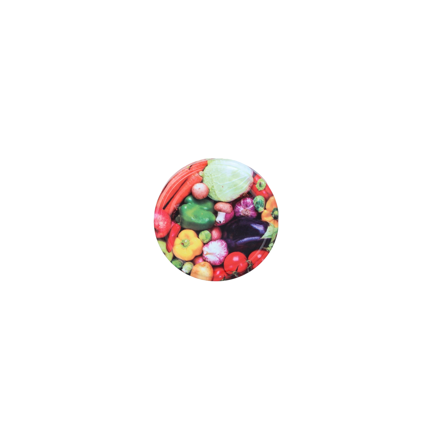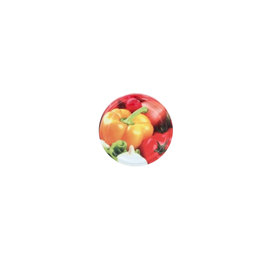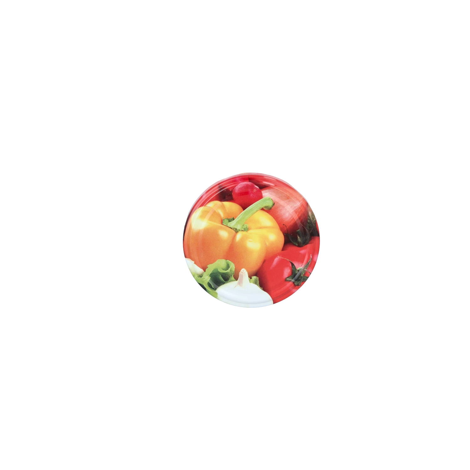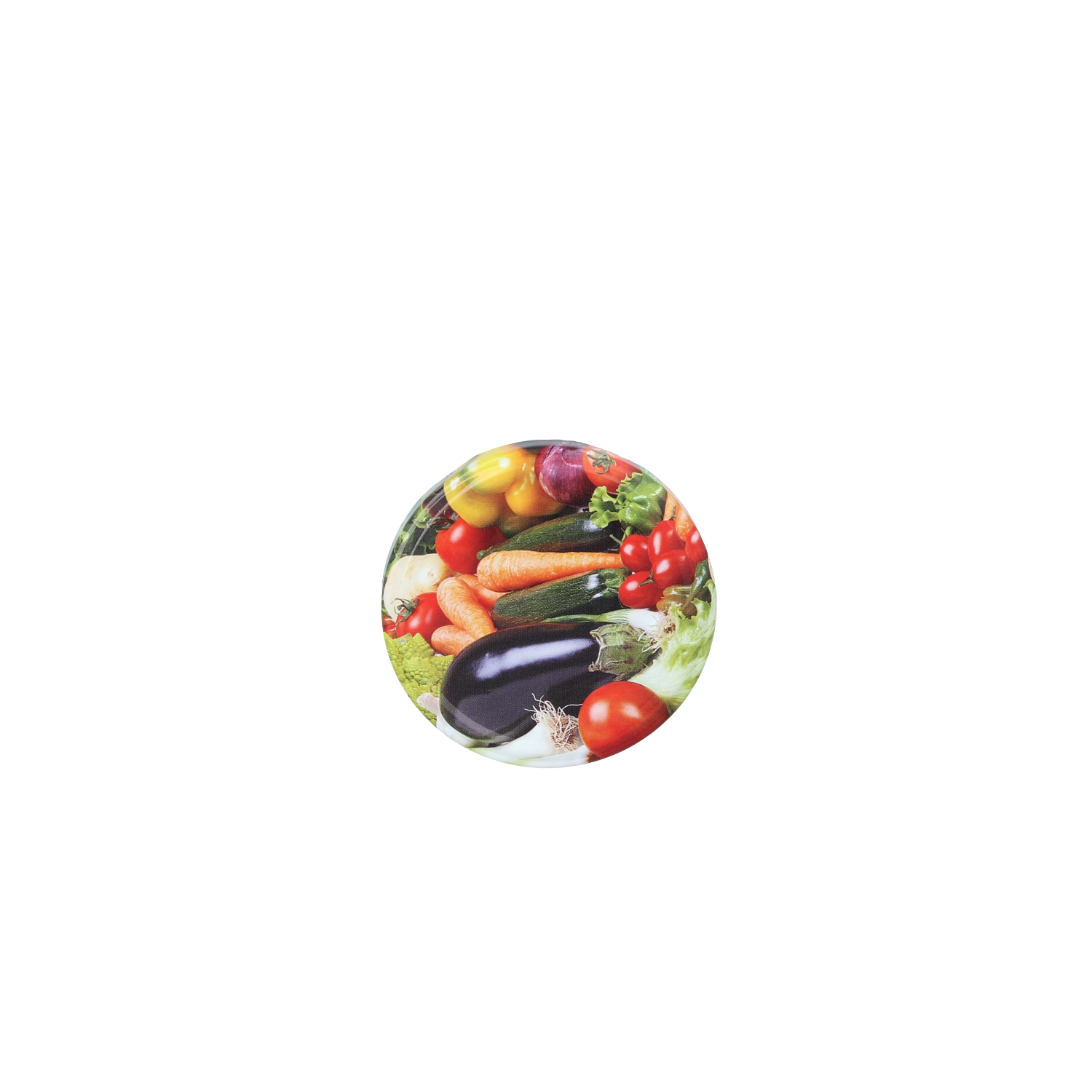 Vidám, többszínű zöldségmintás nyomat feldobja az üvegeket, és segít gyorsan megkülönböztetni a kamra tartalmát.