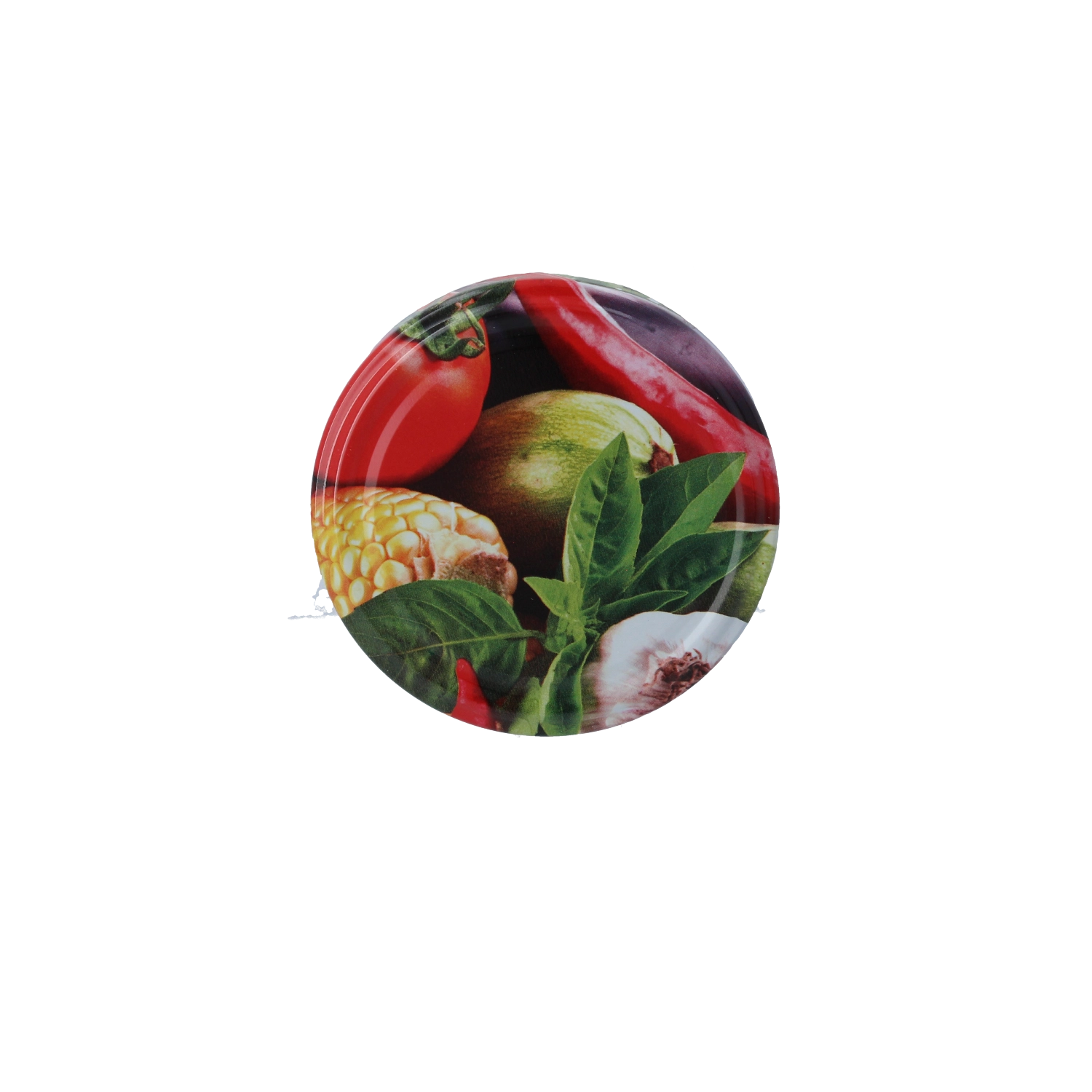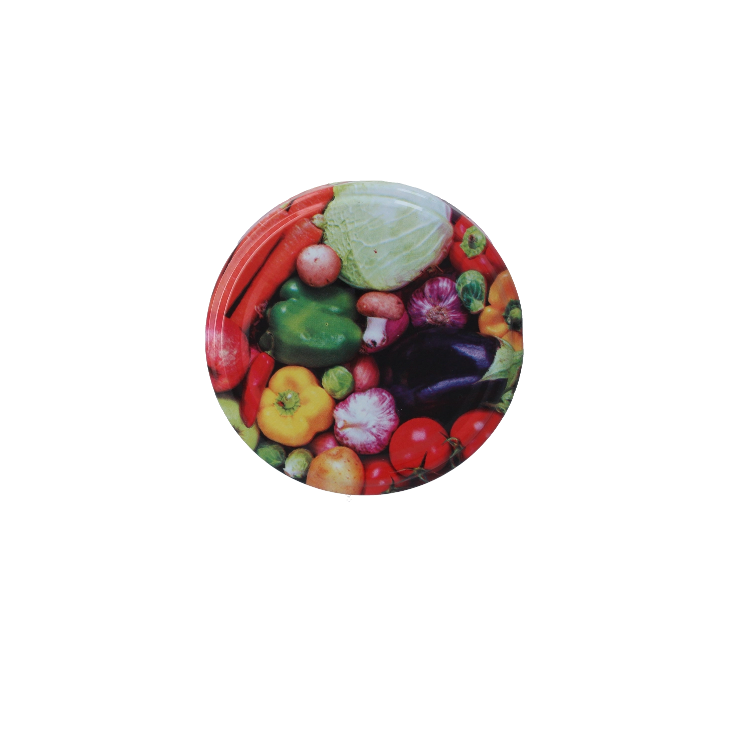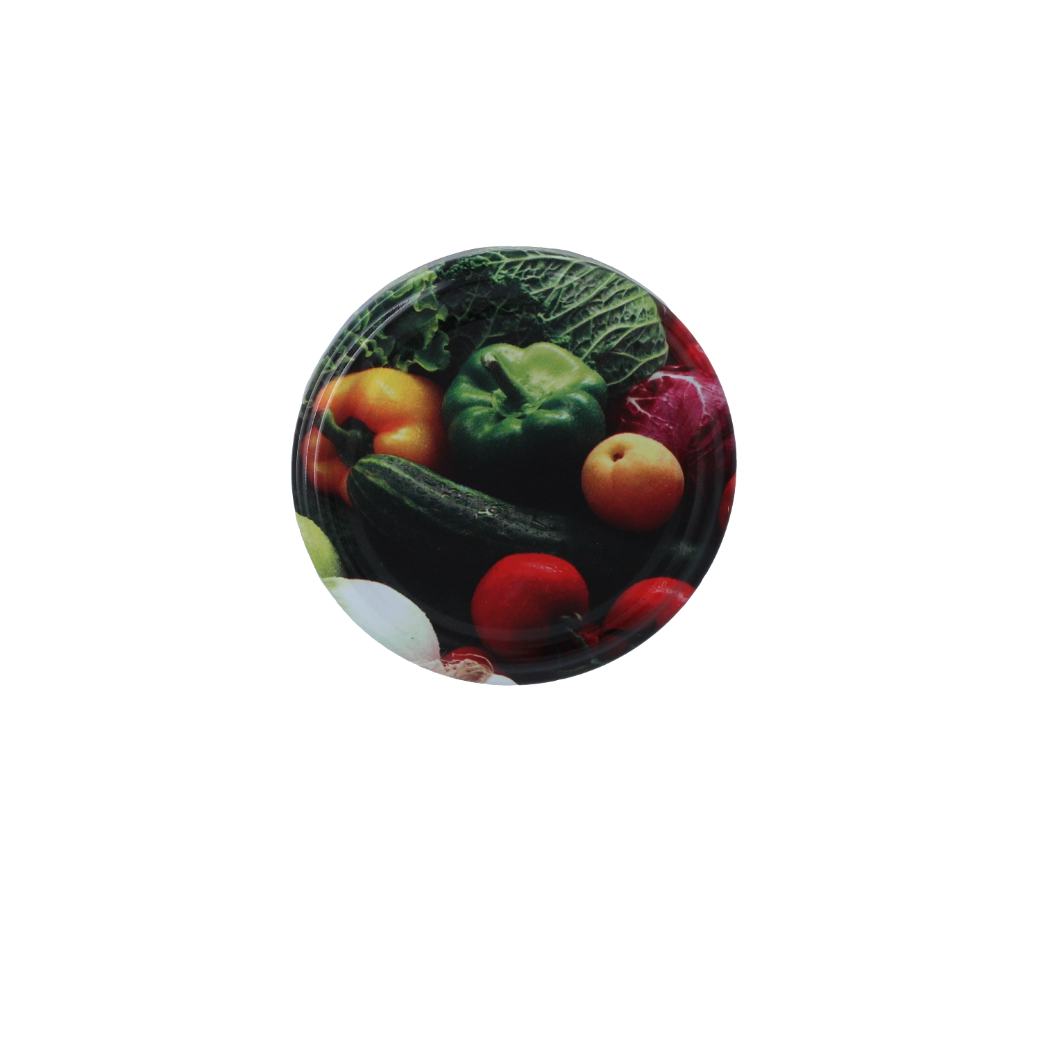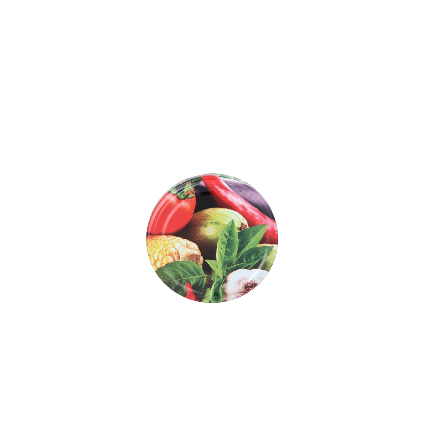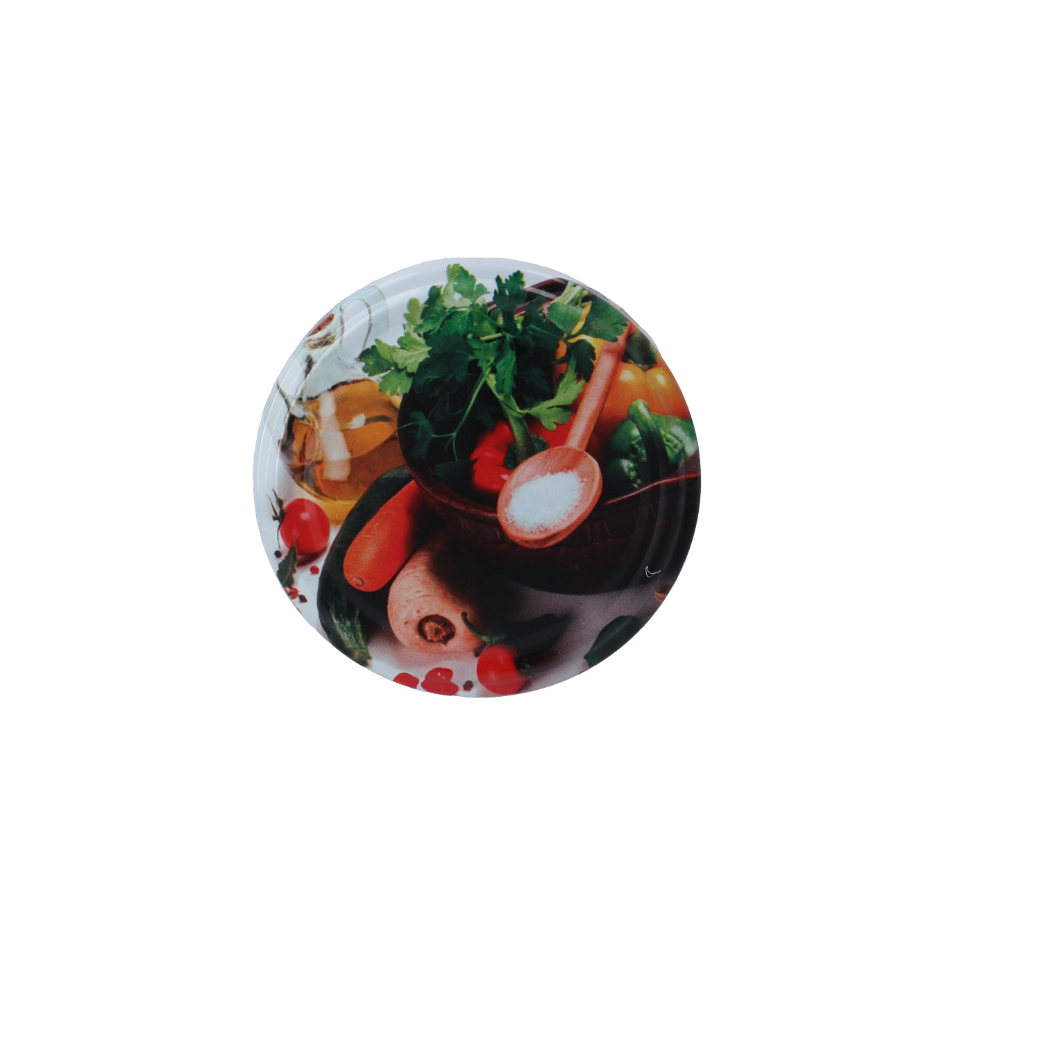 Kiváló minőségű fémből készültek, amely alkalmas élelmiszerrel való érintkezésre, és véd a kiszáradástól, nedvességtől és oxidációtól. A fényes felület színes zöldséges mintával letisztult, esztétikus megjelenést ad bármelyik konyhában. A fedelek többszöri használatra és könnyű karbantartásra készültek.