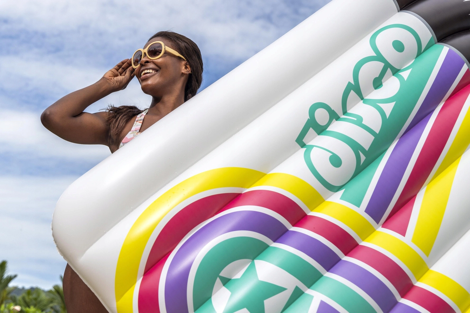 A matrac könnyen felfújható és leereszthető, így pillanatok alatt akcióra kész. Tökéletes medencebulikhoz, nyaralós chillhez és stílusos fotókhoz a közösségi médiában. A csomag tartalmaz egy javítófoltot is a gyors karbantartáshoz.