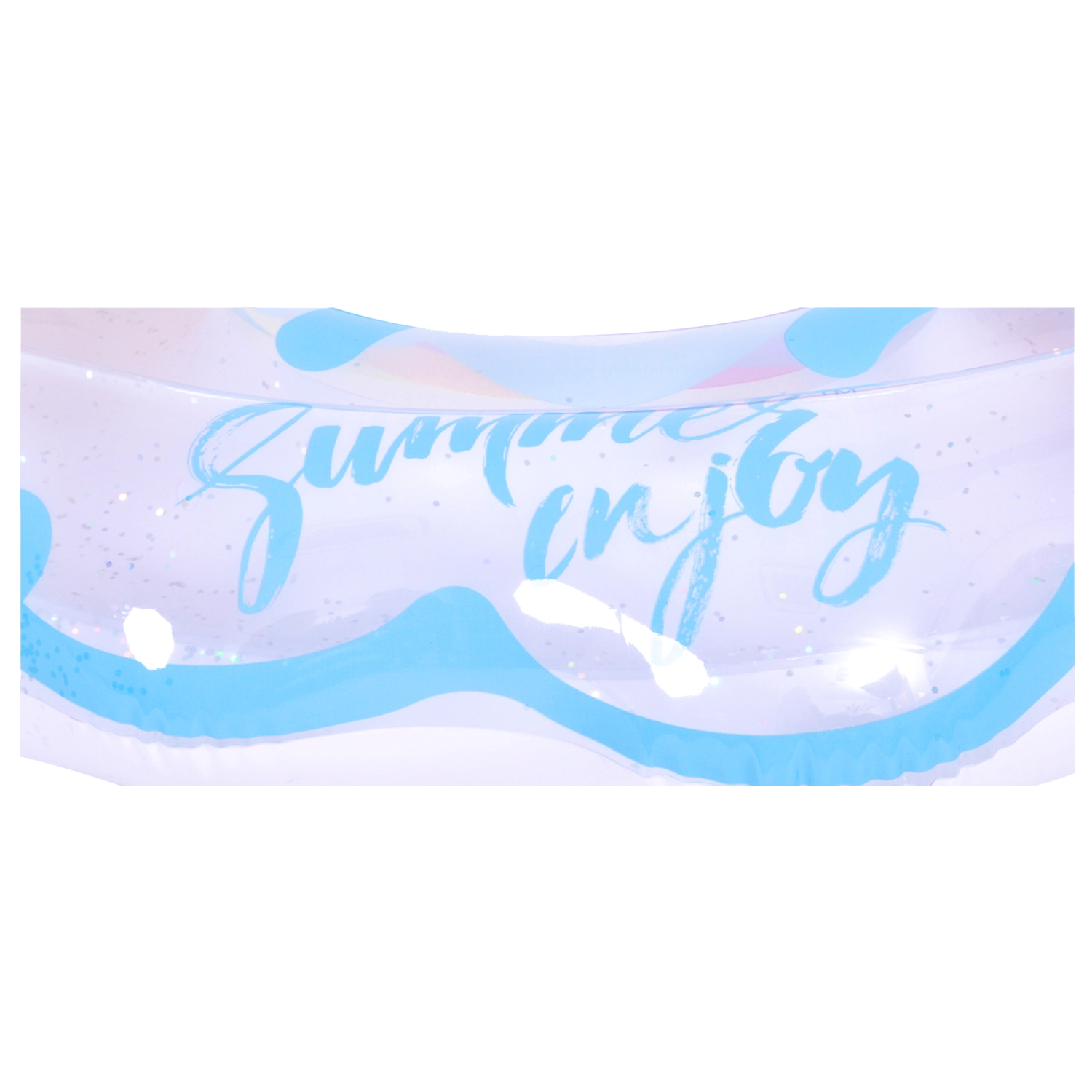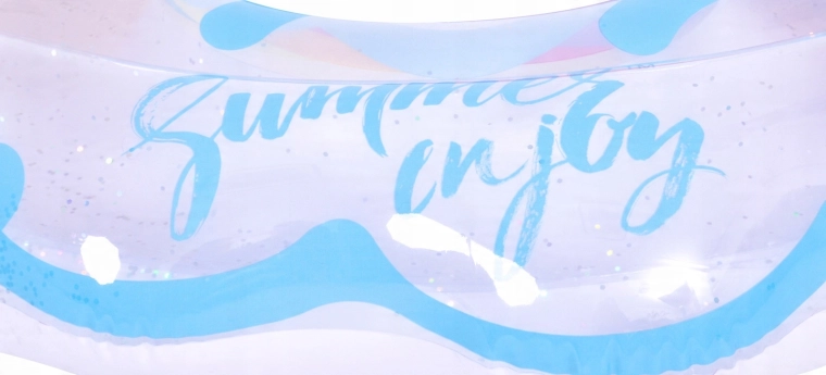 Átlátszó PVC színes csíkokkal és csillogó flitterekkel – a vízen biztosan feltűnő leszel: szórakozás és stílus egyben.